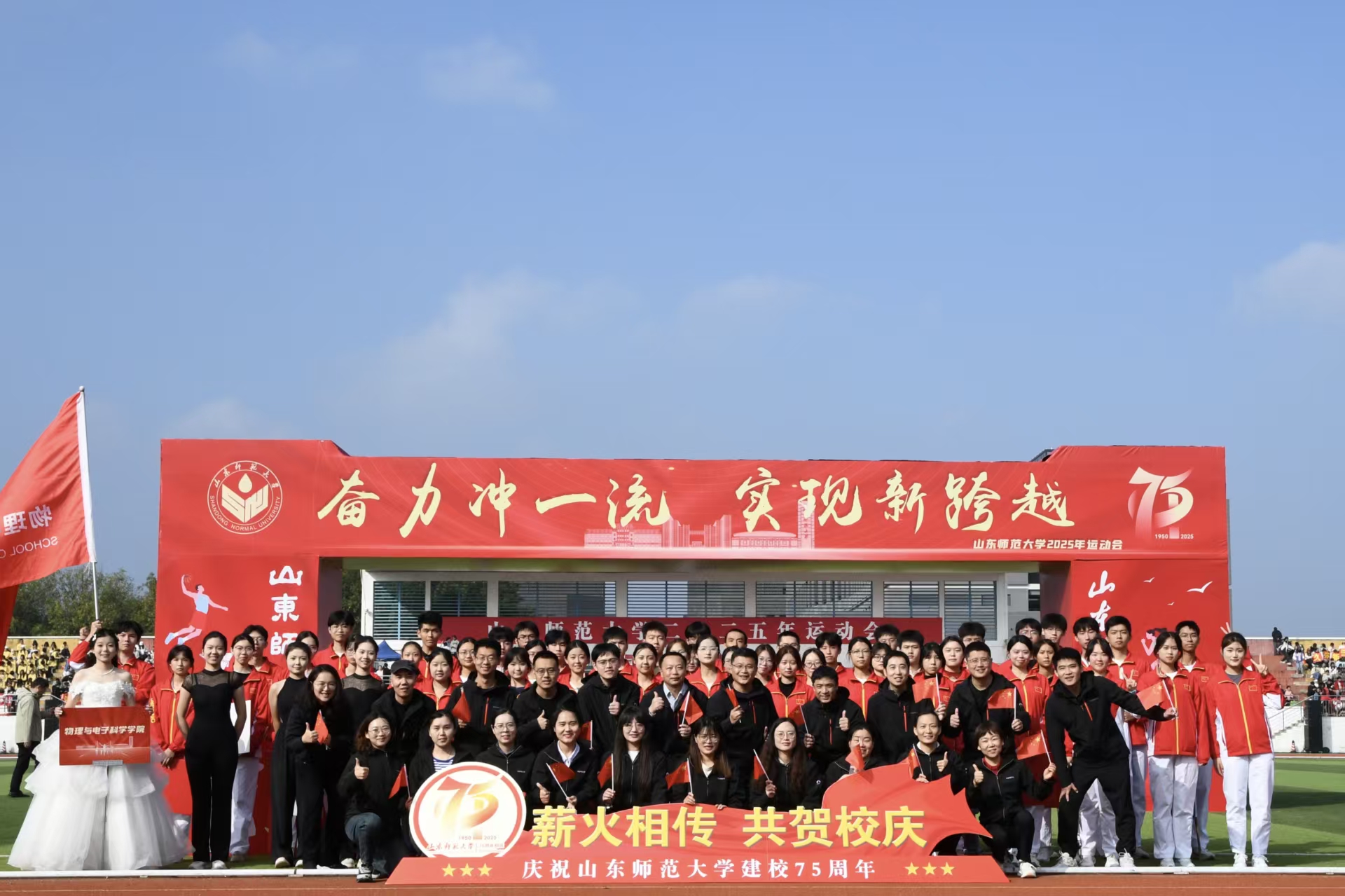 绿茵逐梦志 | 热血战赛场,雄心筑高峰金风送爽,热血燃场。10月16日至18日,山东师范大学2025年运动会在长清湖校区田径场盛大启幕,物理与电子科学学院的运动健儿们怀揣梦想、奋勇争先,后援同学呐喊助威、热力加持,在团体协作中凝聚磅礴力量,共同谱写了一曲青春激昂的运动赞歌。开幕式上,物电学院方阵迈着整齐矫健的步伐入场,一张张热情洋溢的脸庞上写满自信与坚毅,创意十足的队列展示与铿锵有力的口号,既展现了师生们蓬勃向上的精神风貌,...