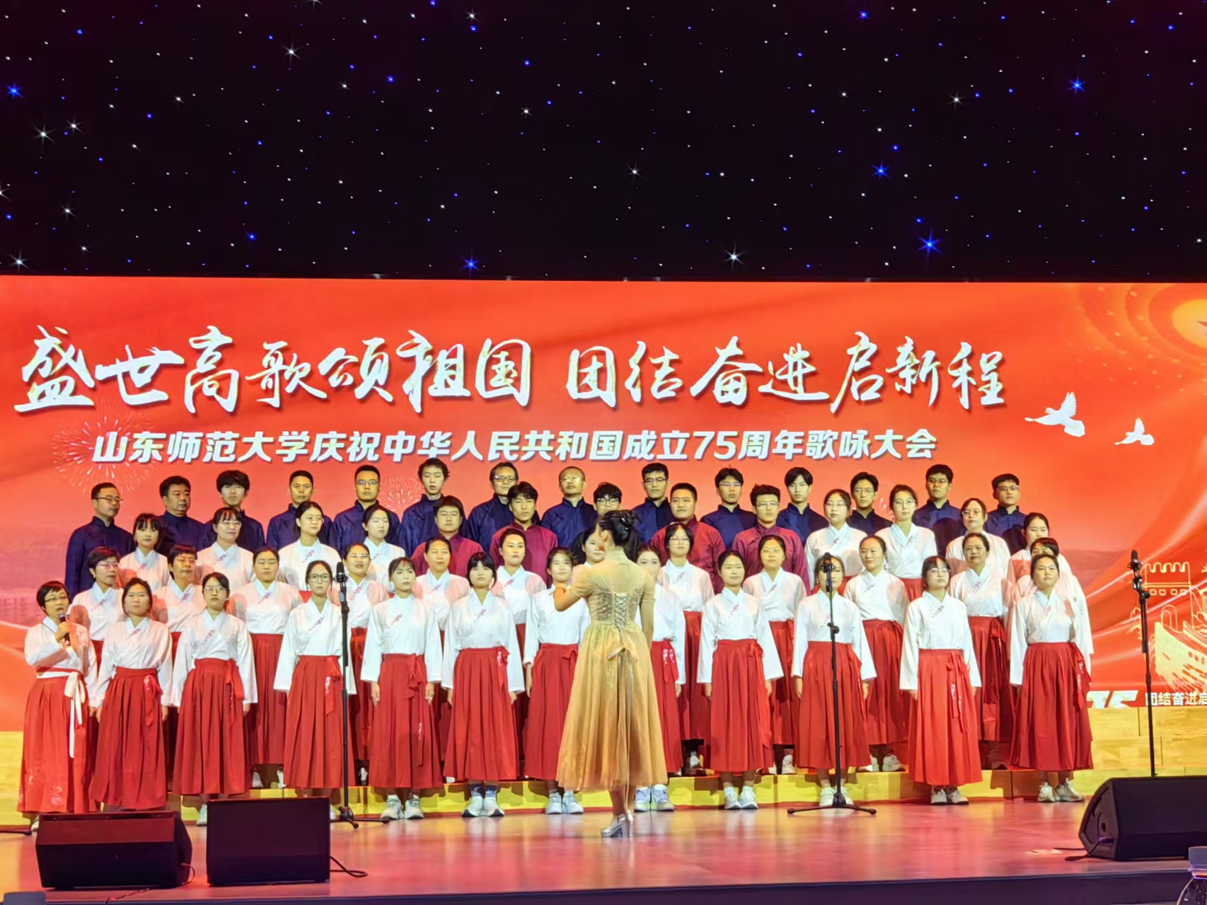 10月31日,“盛世高歌颂祖国,团结奋进启新程”山东师范大学庆祝中华人民共和国成立75周年歌咏大会在长清湖校区文浚楼演播厅隆重举行,全校32支合唱队,近3000名师生参加活动。物电学院师生合唱团以高亢嘹亮的歌声奏响爱党爱国的激昂旋律,充分展现出学院朝气蓬勃、奋勇向前的精神风貌,最终荣获优秀组织奖。 在选曲阶段,学院广开言路,精心挑选了《红旗飘飘》《我和我的祖国》两首歌曲向祖国献礼。在节目构思阶段,指导教师和乐队指挥殚精竭虑,...