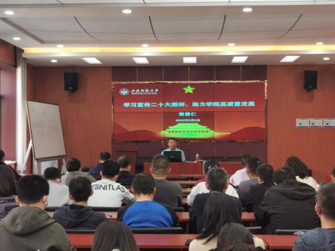 2023年3月9日中午,为进一步学习宣传贯彻党的二十大精神,学院举办题为“学习宣传二十大精神,助力学院高质量发展”二十大精神学习宣传报告会。学院党委书记谢德仁担任主讲人,学院党委委员及全体教工党员参加。 谢德仁紧紧围绕党的二十大的主题和重要成果、过去5年的工作和新时代10年的伟大变革、马克思理论中国化时代化、中国式现代化、全面建设社会主义现代化国家的目标任务、坚持党的领导和全面从严治党、应对风险挑战及教育、科技和人才等八个主题一一展开,...