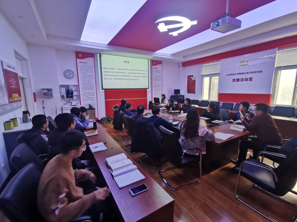 12月15日上午,物理与电子科学学院于文澜楼F311党建活动室举行党建品牌交流会,学院党委书记谢德仁,党委副书记杜伟、副院长宋玉志出席会议,全体支部书记参加会议并汇报支部特色党建品牌活动。教工支部将党建与科研教学相结合,全面发挥党建引领作用。教工一支部打造《虚拟实验助教学,务实党建促发展》品牌活动,充分发挥党组织对实验教学的引领作用,促进教学、学科建设、学生培养等方面的创新与发展。教工二支部将党建与三...