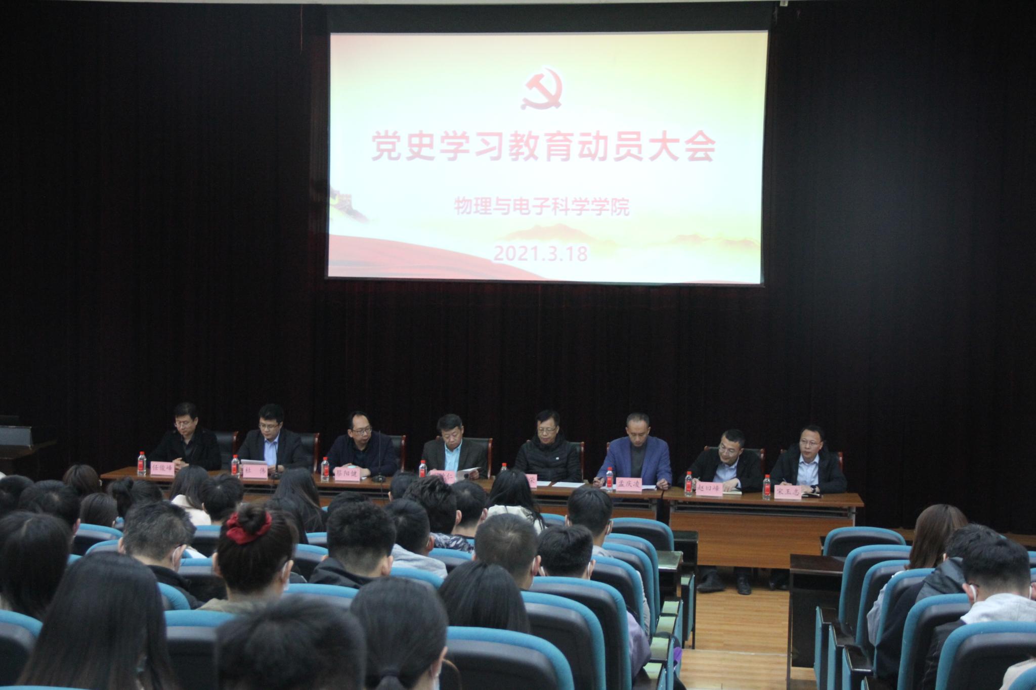 3月18日下午,物理与电子科学学院党史学习教育动员大会在长清湖校区第三报告厅举行。学院党委领导班子全体成员出席会议。党委书记谢德仁作动员讲话,院长蔡阳健主持会议,党委副书记杜伟传达学院党史学习教育实施方案。学校督导六组李培荣、孟庆凌到会督导。谢德仁在动员讲话中要求,要深刻认识开展党史学习教育的重大意义,把思想和行动统一到习近平总书记关于党史学习教育的重要讲话精神上来,进一步增强学习教育的系统性和针...