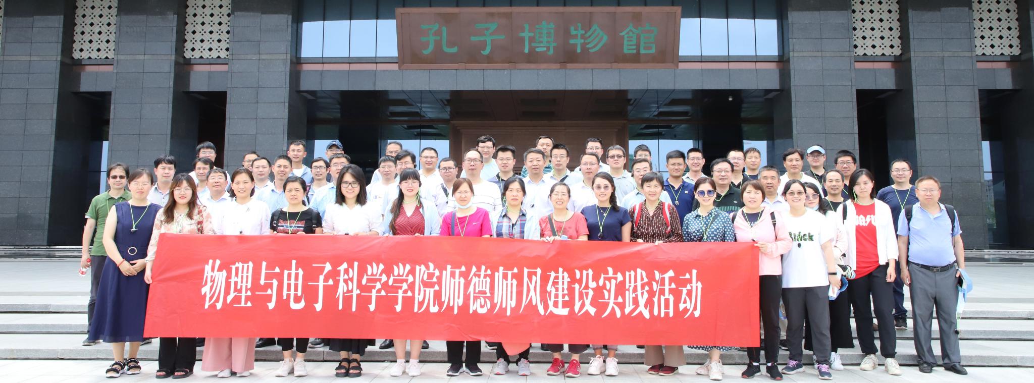 6月18日至19日,物理与电子科学学院赴曲阜开展师德师风培训实践活动。本次培训由物电学院党委和山东师范大学干部教育培训学院共同组织实施,通过观摩学习、现场教学等方式对师德师风、传统文化进行深度学习。在尼山圣境,老师们参观了气势恢宏的孔子大学堂。学堂内古朴典雅、美轮美奂,体现出“拙朴、自然”的整体风格,彰显出儒家文化的独特魅力。学员依次观访了仁、义、礼、智、信五个大厅、七十二贤廊、大学之道,感受儒家“...