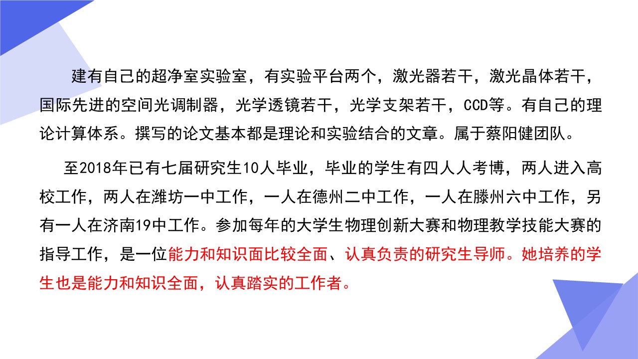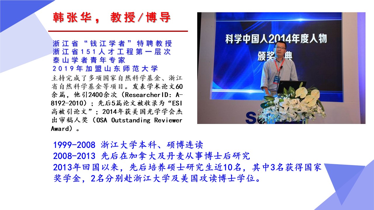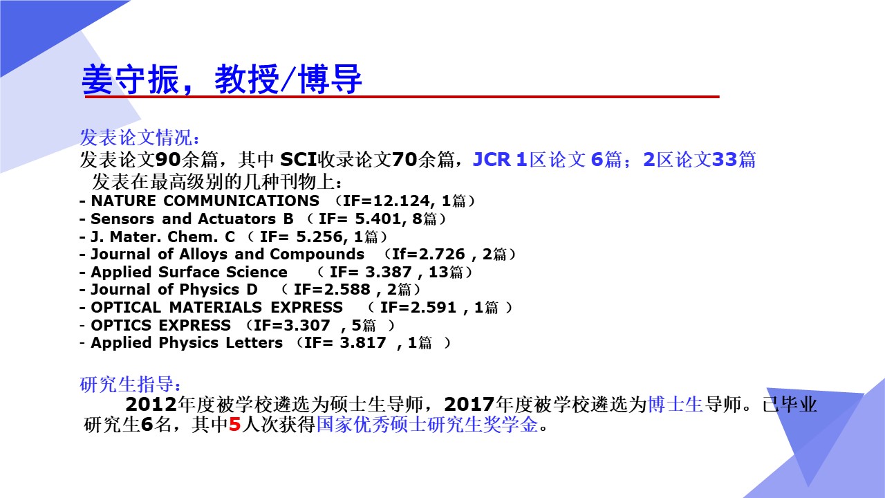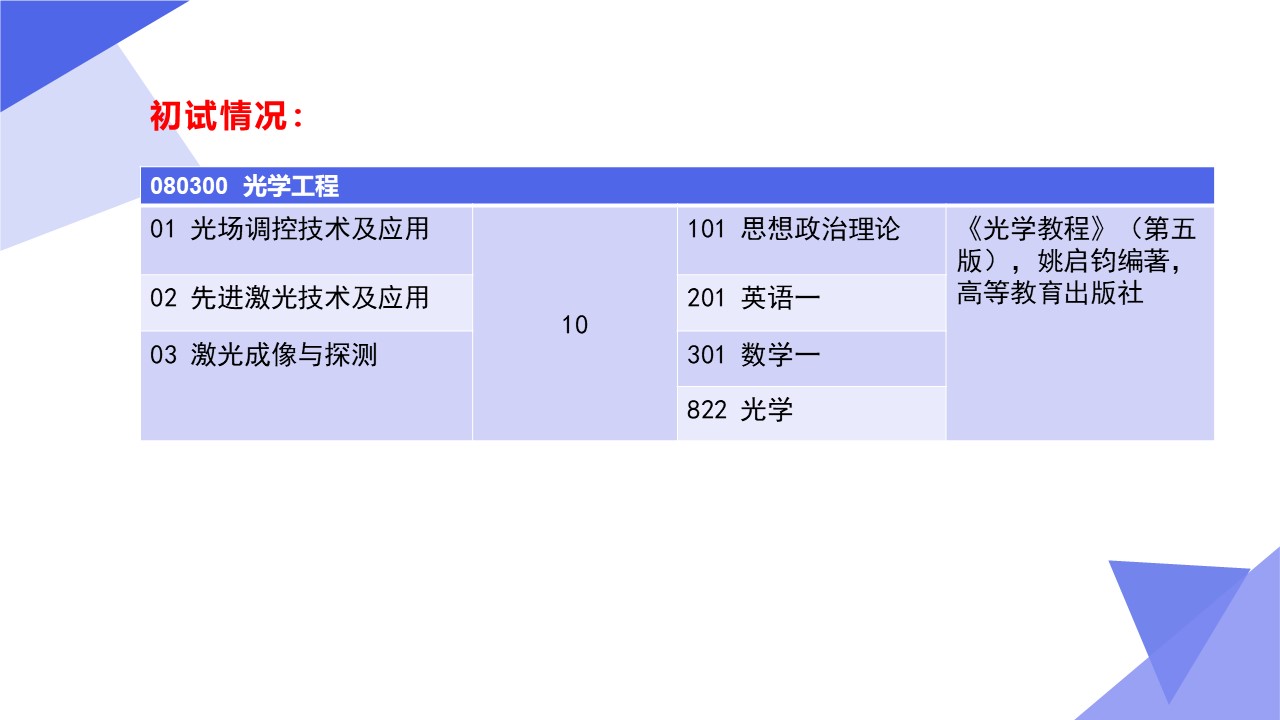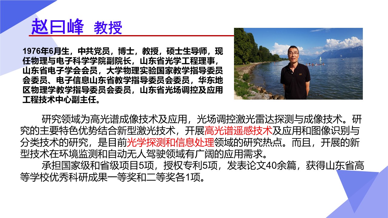 光学工程一级学科硕士点依托山东师范大学物理与电子科学学院建设,目前已经形成了一支结构合理、团结合作、学术思想端正、学术气氛活跃的学术队伍,拥有国家杰青1人,泰山学者3人,省突贡专家2人,省杰青1人,省优青1人,拥有物理学一级学科博士点和博士后流动站;“光学与光子器件实验室”和“医学物理图像处理技术”省级重点实验室、“光电功能材料与器件实验室”省“十三五”高校重点实验室。实验设备总值为5000余万元,实验室面积9000余平方米。近三年来,共主持国家级项目37项,其中重大计划(培育)项目1项,获国家级“新工科”教改项目1项,省部级项目23项;在国内外学术期刊上发表论文391篇,获发明授权专利30项;获国家自然科学二等奖1项、教育部高校科学研究优秀成果自然科学二等奖1项、省自然科学二等奖3项、省科学技术进步奖一等奖1项,省国际科学技术合作奖1项。