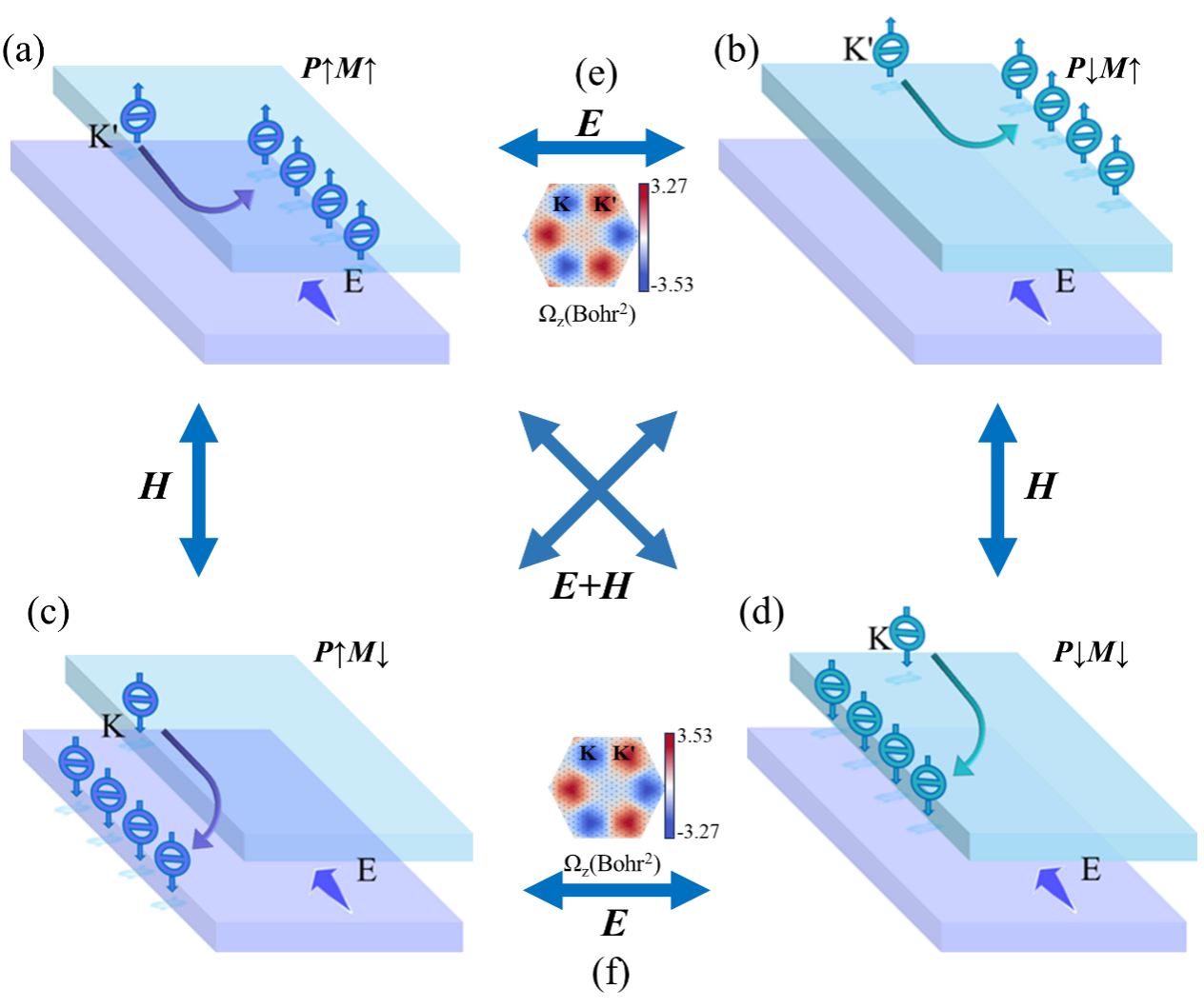 基于层和谷自由度的层电子学和谷电子学对新一代电子设备的制造和应用具有重要意义。虽然层霍尔效应已在理论和实验上实现,但它主要是基于拓扑和反铁磁晶格。研究者在低能有效k·p模型的基础上,研究了双层铁磁晶格中可控谷层霍尔效应(V-LHE)的机理,提出了双层铁磁晶格中通过层间滑移可以产生V-LHE。由于时间反转和空间反转对称性的破缺,基于谷、层自由度、铁磁和铁电耦合的V-LHE可以被预测。此外,谷和层自由度还可以通过磁化方向和层间滑移来分别来调控。通过第一原理计算作者在真实体系双层CrSI晶格中也证明了这一机制,并发现V-LHE可以通过垂直外电场有效地调节。这些发现为谷、层电子学提供了新的研究平台。