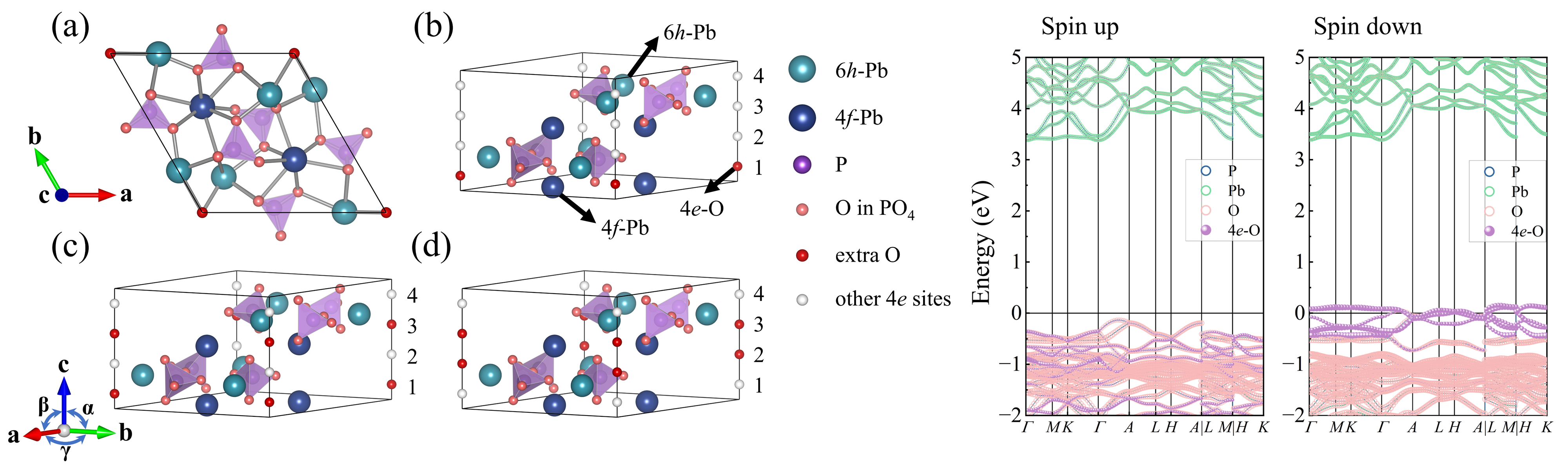 论文基于理论计算讨论了过量氧及铜含量对铅磷灰石和铜掺杂铅磷灰石磁性的影响,结果发现了三种可能的铁磁性化合物,即Pb10(PO4)6O2、4f-Cu型Pb9Cu(PO4)6O2和4f-Cu型Pb8Cu2(PO4)6O。鉴于Cu取代4f位点比取代6h位点时能量高,判断出Pb10(PO4)6O2可能是实验中最可能的铁磁性成分。研究指出,过量氧含量对激发Pb10(PO4)6O2的铁磁性起着至关重要的作用。该工作不仅为观察到的铁磁现象提供了必要和可靠的解释,而且为激发和增强磁性化合物的铁磁性提供了一种新的途径。