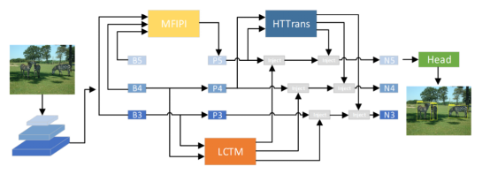 特征金字塔网络能够在逐层的基础上集成不同尺度的特征,从而增强目标检测性能。然而,缺乏跨层次信息融合的交互阻碍了上下文特征信息的获取,限制了目标检测器的进一步发展。此外,值得注意的是,卷积神经网络缺乏非局部信息提取,而Transformer不适用于局部信息提取和优化。为了应对这些挑战,本文提出了一种基于CNN和Transformer高效联合机制的对象检测器,用于接收和发送分层特征信息进行编解码,以增强不同层次特征信息的高效交互传输。