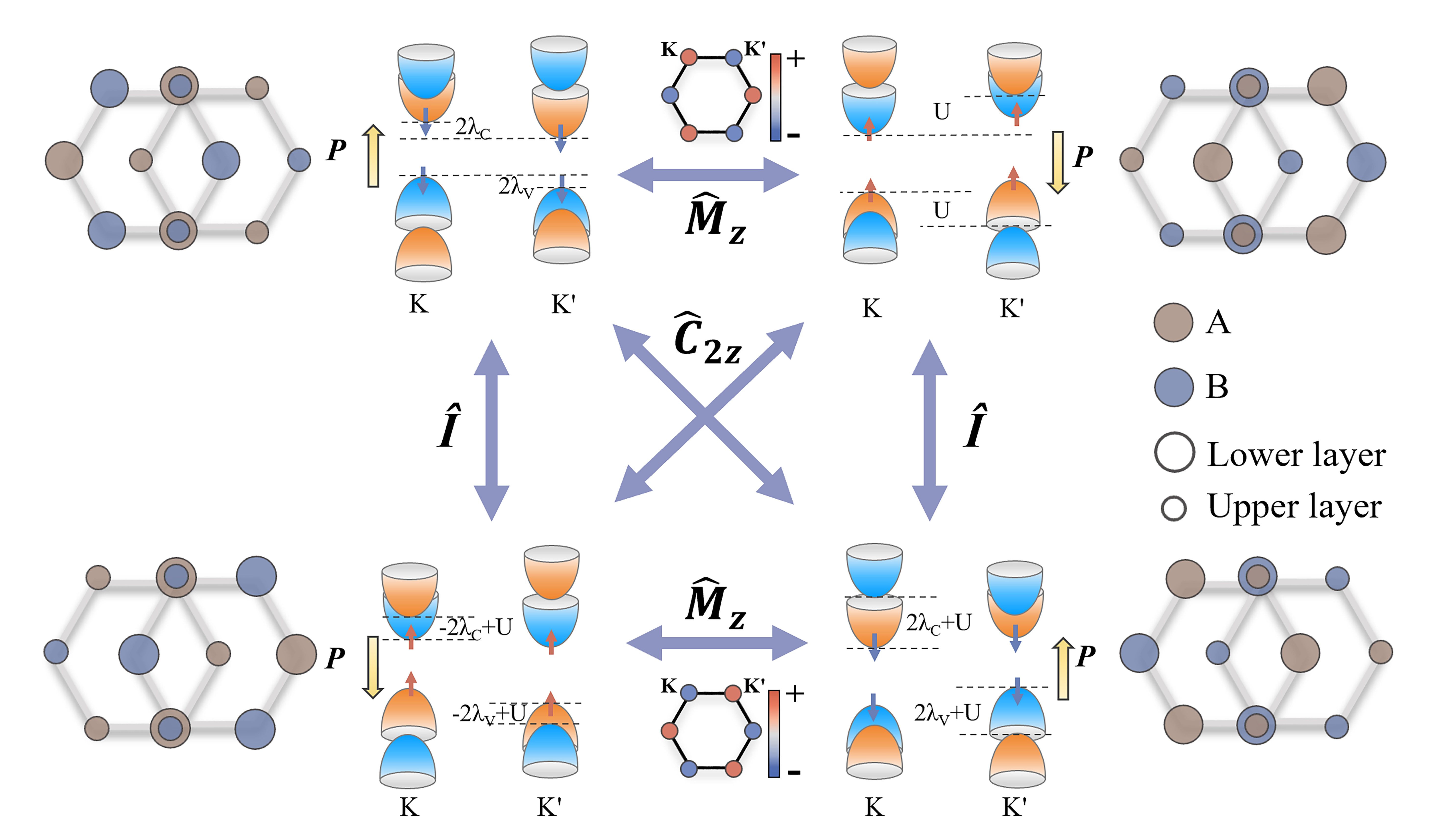 在低能有效模型的基础上,作者提出了构建完全补偿亚铁磁性的双层膜的一般方法。在完全补偿亚铁磁双层膜中,铁电极化与层间A型反铁磁性之间的耦合诱导了层锁定的贝里曲率,从而提供了抗磁干扰和非相对论自旋分裂的优势。此外,对双层膜施加特定对称操作时,可以改变铁电极化的方向,实现谷指数和层间耦合能的反转。所获得的自旋、谷和层自由度的可调多重耦合会诱导双层全补偿亚铁磁体系产生层极化反常霍尔效应。通过第一原理计算,作者在双层Co2NFCl晶格中施加了对称操作,从而证实了这一机制。这项工作扩大了全补偿亚铁磁体的候选范围,并且为调控多层系统的电子特性提供了新的思路。