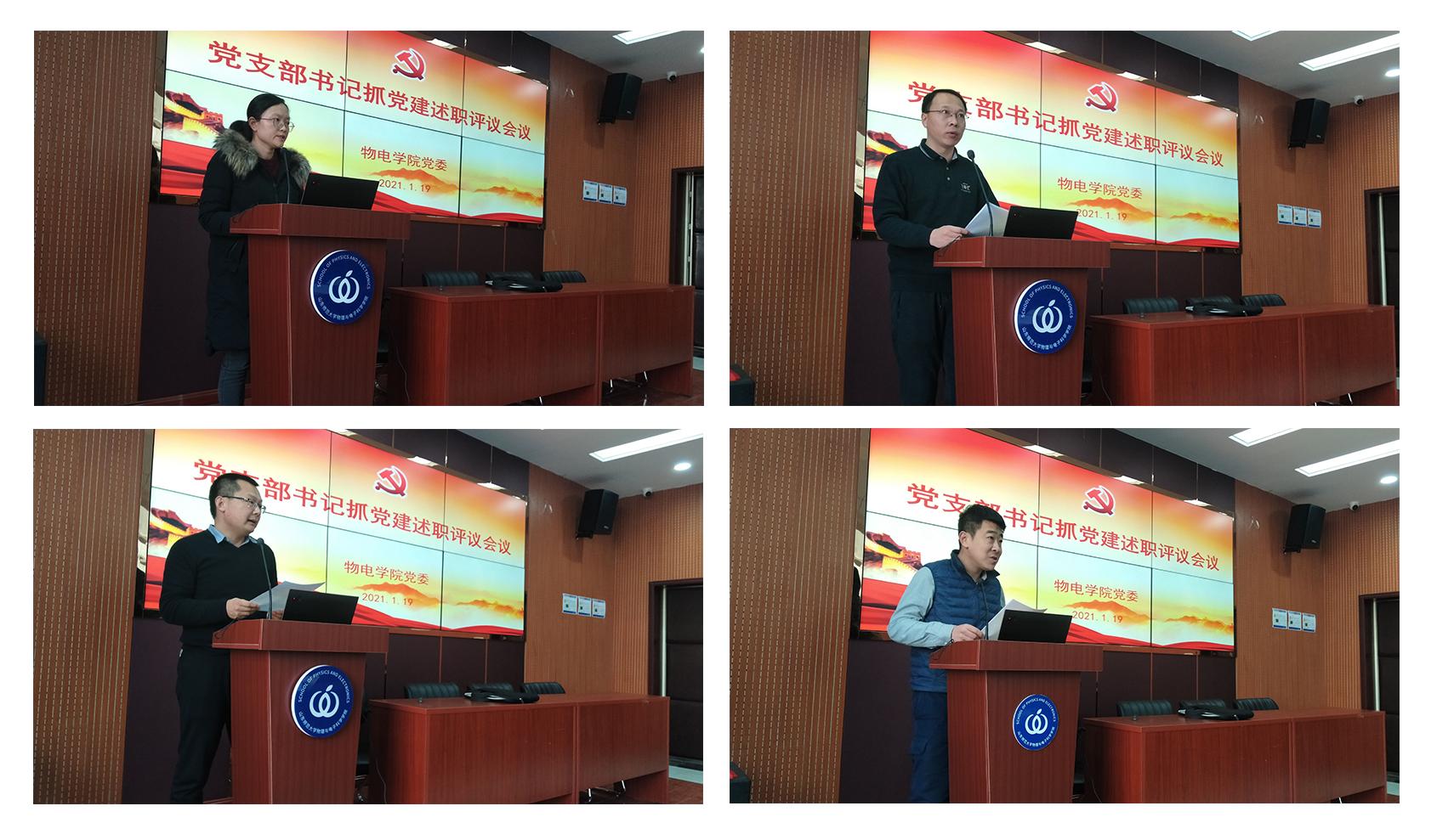 学院4名教工党支部书记和7名学生党支部书记围绕2020年度本支部工作开展情况、支部存在问题和下步工作打算三个方面,认真梳理分析了本支部取得的成绩和存在的不足,并有针对性的提出了下一步工作措施。各支部汇报内容丰富,教工支部以党建促进业务工作,疫情期间发挥党员模范作用,认真备课授课,努力确保线上教学效果。开放国家级虚拟仿真平台辅助线上教学,与其他院校共享平台优势,取得了显著成果,做到了科研与党建互融互促。学生各支部分别介绍了支部优秀党员及获得荣誉,详细展示了一年来支部开展的各项活动,并针对党员理论水平较为薄弱、党建与学生工作联系不够紧密等问题提出了看法和想法。