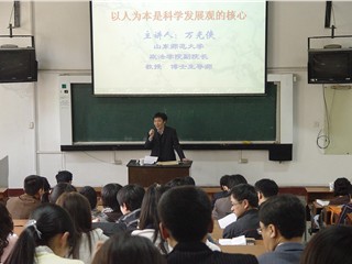 万光侠教授从四个方面阐述了“以人为本”的思想来源,以十七大报告为根据,深刻分析了“以人为本”的科学内涵,并结合实际探讨了在实践中如何坚持以人为本。万教授的讲座,从理论上进一步提高了我们对科学发展观的理解和认识,为下一步在科学发展观理论指导下,有效地进行调查研究,科学解决学院改革与发展中的问题,提供了坚强的理论保证。同时,也为宣传好、贯彻好科学发展观,使科学发展观转化为人民群众自觉的行动,发挥重要的推动作用。