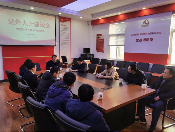 12月12日下午,学院在文澜楼311会议室举办党外人士座谈会。无党派人士、济南市政协委员郝作强教授,无党派人士董庆瑞副教授、九三学社社员宋蓬勃副教授等民主党派和无党派教师代表参加了会议。会议由学院党委书记、统战委员谢德仁主持。学院党委副书记、纪委书记杜伟,副院长宋玉志、副院长王晶晶、工会主席修显武出席。