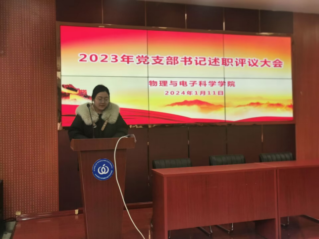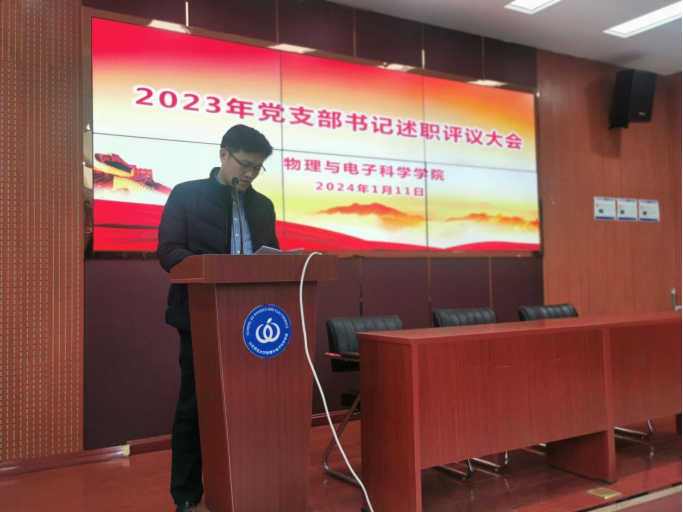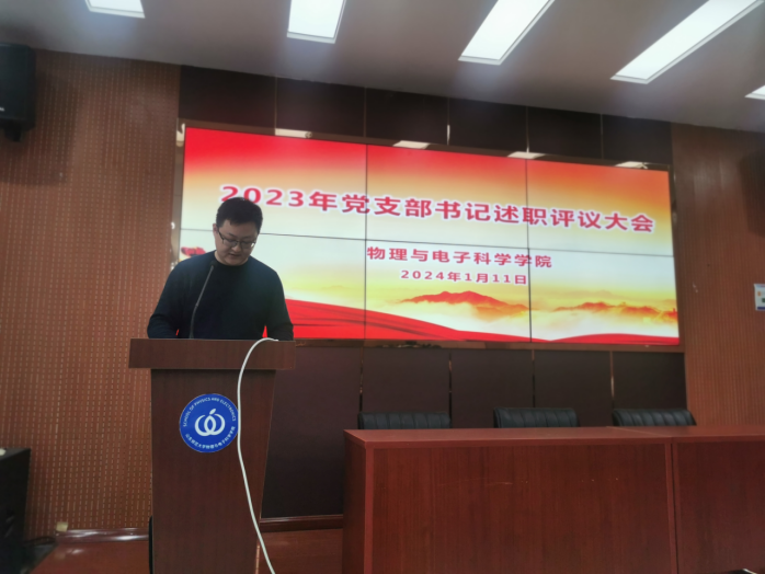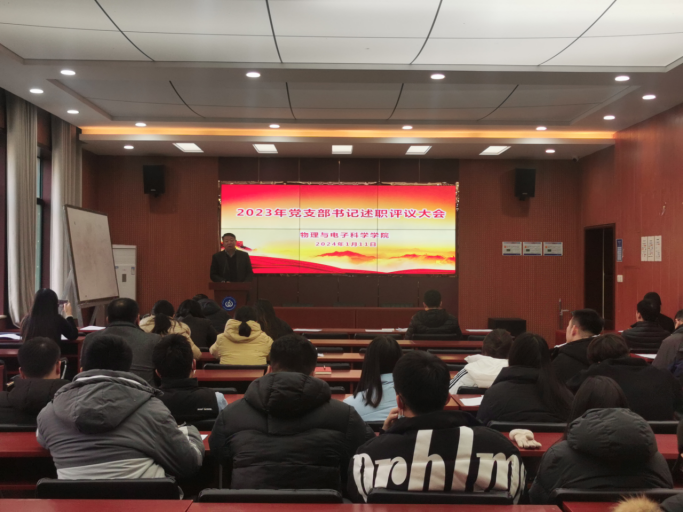 2024年1月11日下午,为深入学习贯彻习近平新时代中国特色社会主义思想和党的二十大精神,认真贯彻落实习近平总书记关于党的建设的重要思想,不断提升基层党建工作质量,学院在长清湖校区文澜楼F347报告厅召开党支部书记述职评议大会。物电学院党委委员、各党支部书记、副书记及支委委员参加会议。学院党委书记谢德仁主持会议。