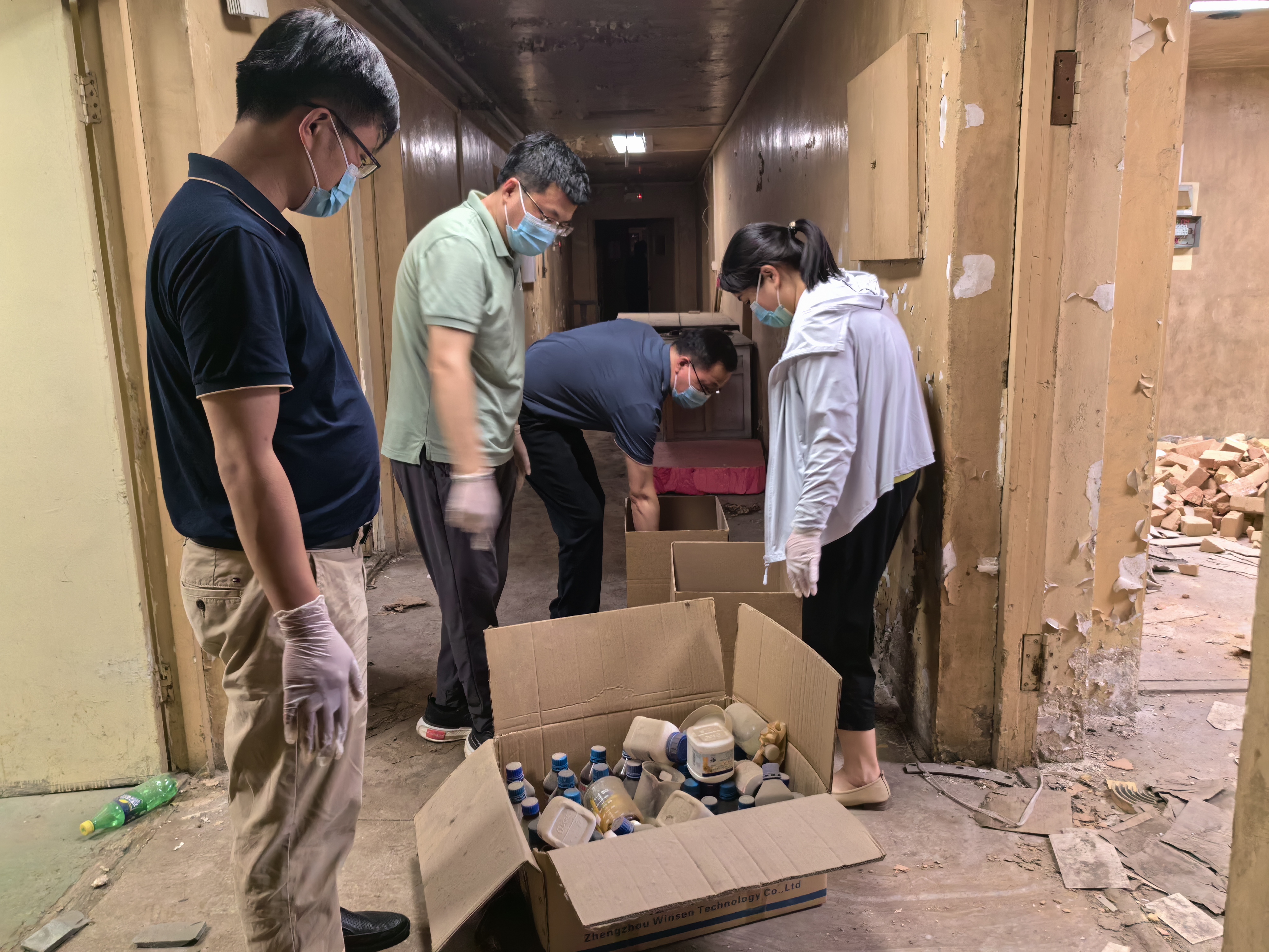 清理工作在千佛山校区原半导体所楼展开,大家不顾天气炎热,不畏辛劳,认真细致分类整理废弃的各种实验材料,严格按照相关规定进行分装和处理,确保废物安全处理不留隐患。大家发挥协作精神,互相配合、相互支持,以高度的责任感和使命感投入到每一项细节工作中。认真清点、整理、收纳、搬运各类固液体废物,共清理两层楼近20个房间数百件物品,有效保障危废试剂材料管理,消除实验室安全隐患,为创建和谐美好的校园环境贡献自己的力量。