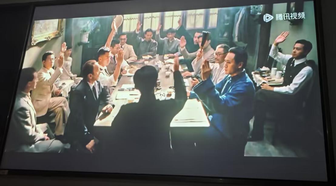 影片《建党伟业》全景式再现了从辛亥革命到中国共产党成立这段波澜壮阔的历史,生动展现了早期共产党人在风雨如晦的旧中国,为救亡图存、探索救国道路而不懈奋斗的历程。从新文化运动的思想启蒙,到五四运动的呐喊觉醒,再到中共一大的庄严召开,影片以细腻的镜头语言刻画了李大钊、陈独秀、毛泽东等革命先辈的坚定信仰与家国担当。当看到革命先辈在风雨飘摇的旧中国,以热血和生命探寻救国道路时,在场学员心灵深受震撼,深刻体会到中国共产党的成立得来不易,是无数先辈用智慧与勇气铸就的伟大奇迹。