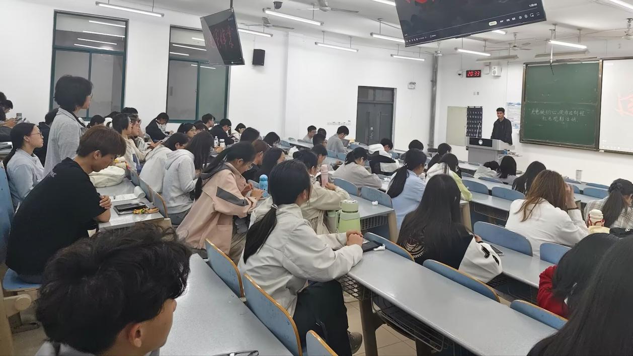 为深入学习贯彻习近平新时代中国特色社会主义思想和党的二十届四中全会精神,切实加强对入党积极分子的培养教育工作,4月19日晚在长清湖校区C区131教室,学院党委组织第72期入党积极分子培训班学员开展“光电映初心,使命启新程”红色观影活动,共同观看红色影片《建党伟业》,在光影中重温峥嵘岁月,感悟初心使命。
