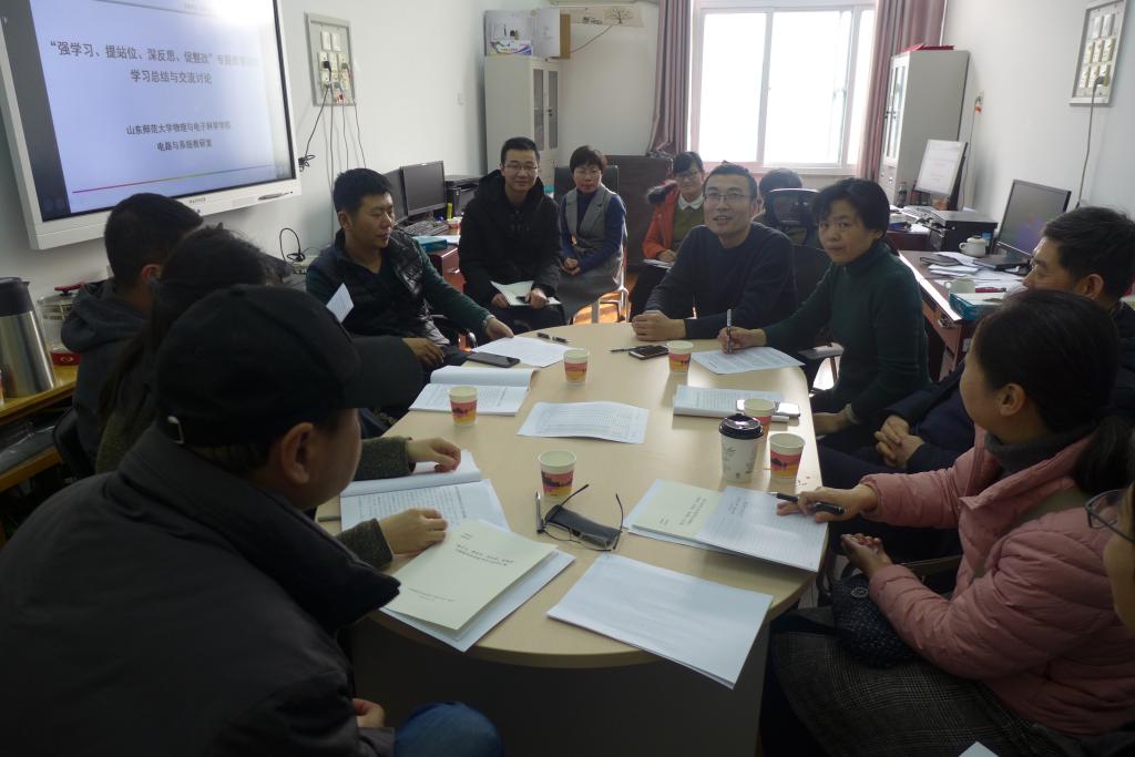 物电学院22日下午分8个组开展小组交流讨论(实验物理教研室、理论物理教研室、普通物理教研室、微电子学与固体电子学教研室、电路与系统教研室、通信与信号处理教研室、中学物理教法教研室、行政组),老师们结合案例教训,对照文件要求,深刻反思不足,进一步明确了今后工作的努力方向和具体措施。