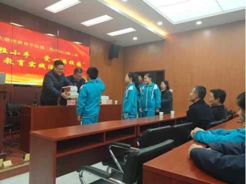 会后,党支部成员向同学们赠送了图书。
