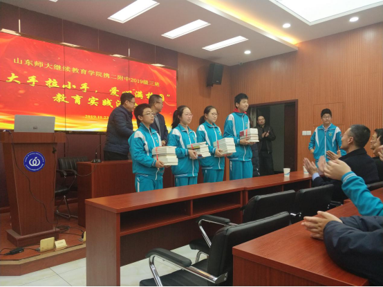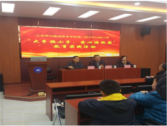 为深入贯彻我校关于开展“敬廉崇洁”校园廉洁文化系列活动的相关要求,11月23日,物电学院教工第四党支部开展了“廉洁伴我行”主题党日活动暨“大手牵小手,爱心满校园”主题活动,与继续教育学院党支部成员在文澜楼热情接待了来访的山东师范大学第二附属中学2019级三班学生一行。为了使同学们更加深入地了解本次实践活动的意义,党支部成员首先会同来访师生展开了一场以“少年时代的奋斗”为主题的座谈会。