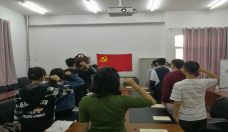 “我志愿加入中国共产党,拥护党的纲领……”,参会党员首先一起面对党旗重温入党誓词,坚定理想信念。书记勉励大家要始终牢记自己为什么站在党旗下,作为一名理工类大学生,要努力学好专业知识、急国家之所急,为民族复兴贡献青春热血。