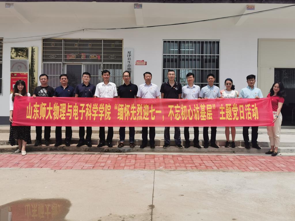 6月30日,物电学院到德州市夏津县我校第一书记帮扶点调研走访,开展“缅怀先烈迎七一,不忘初心访基层”主题党日活动。夏津县挂职县委副书记杜卫东,生态旅游区人大工作文员会主任、黄河故道森林公园管理中心主任于晓辉,第四轮省派第一书记王晓声、王奎锋、丁同楼、段超,学院党委书记谢德仁、院长蔡阳健、组织部副处级组织员尚延山及学院党委委员,部分支部书记参加相关活动。