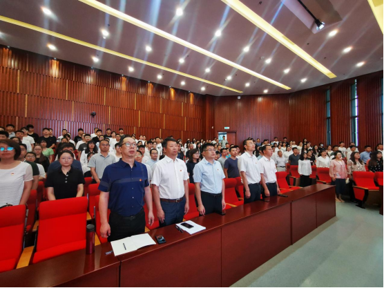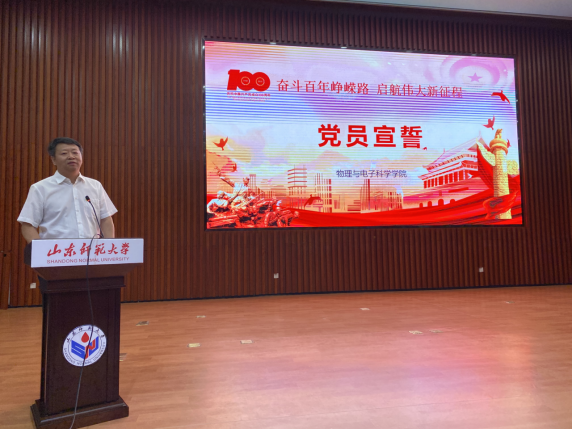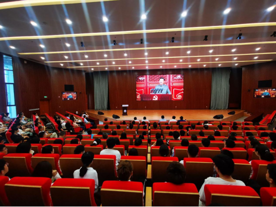 7月1日上午,物理与电子科学学院于文昌楼105报告厅集体观看庆祝中国共产党成立100周年大会直播,学院领导班子成员、师生党员、入党积极分子300人参加活动。