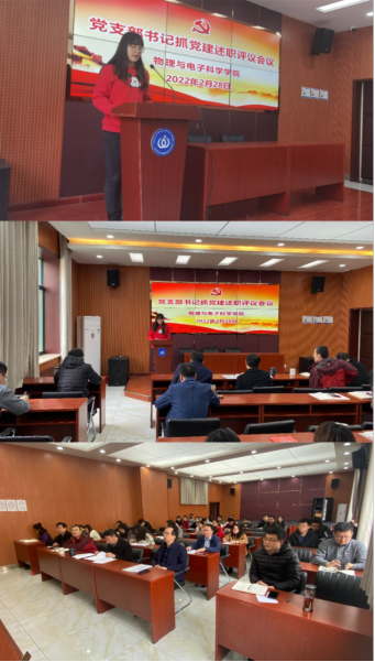2022年2月28日下午,物电学院在长清湖校区文澜楼F347报告厅召开党支部书记抓党建述职评议会议。物电学院党委委员、各党支部书记、副书记和委员参加会议。学院党委书记谢德仁主持并作点评讲话。