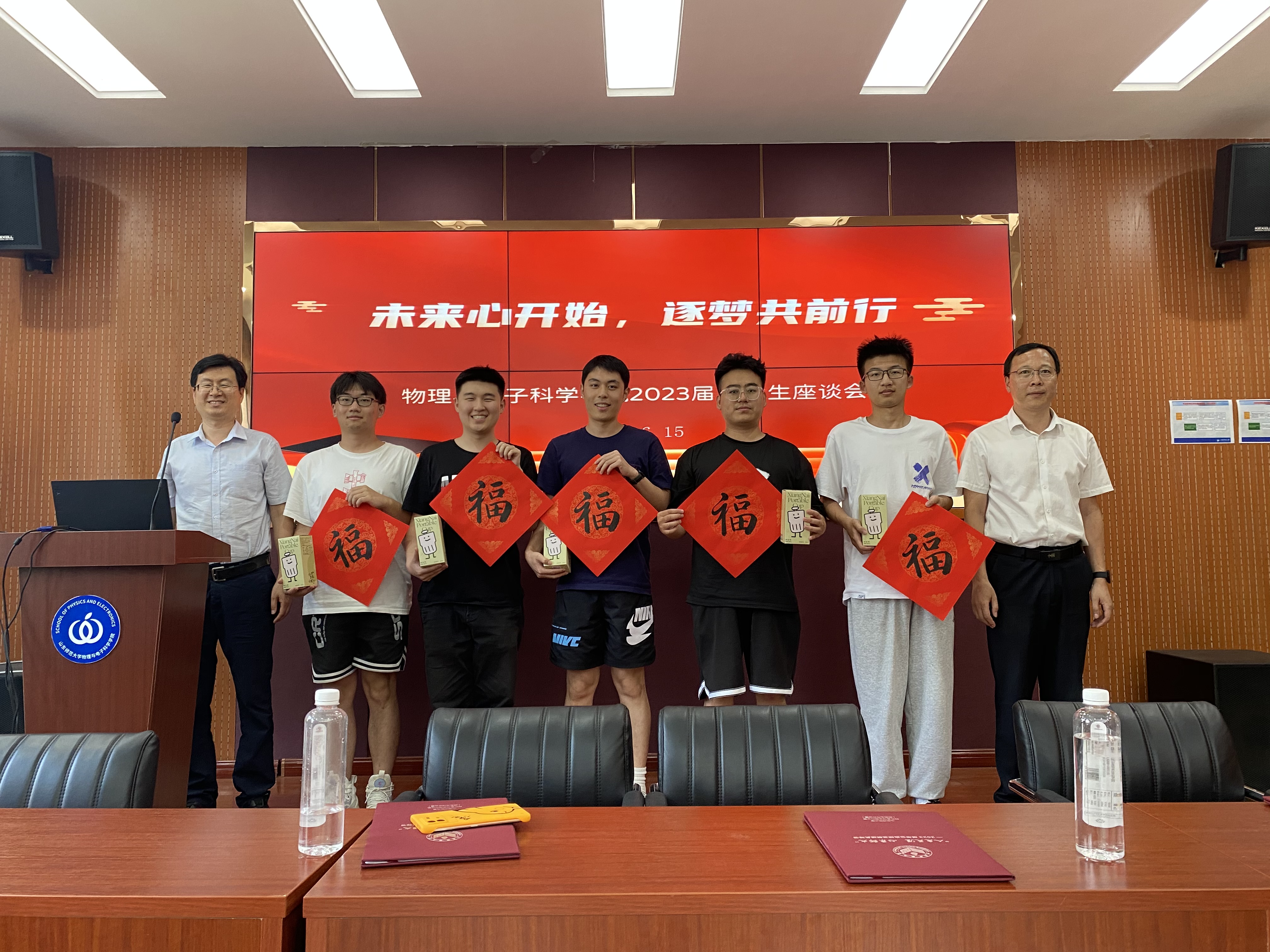 6月16日,物理与电子科学学院于文澜楼A区F347举办2023届毕业生座谈会。学院党委书记谢德仁,副院长任俊峰、宋玉志、王晶晶,学院教师代表,各年级辅导员和30名毕业生代表参加。会议由学院团委书记方芳主持。