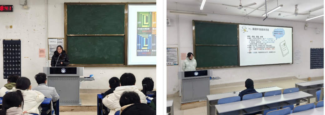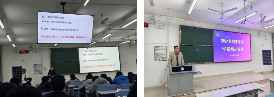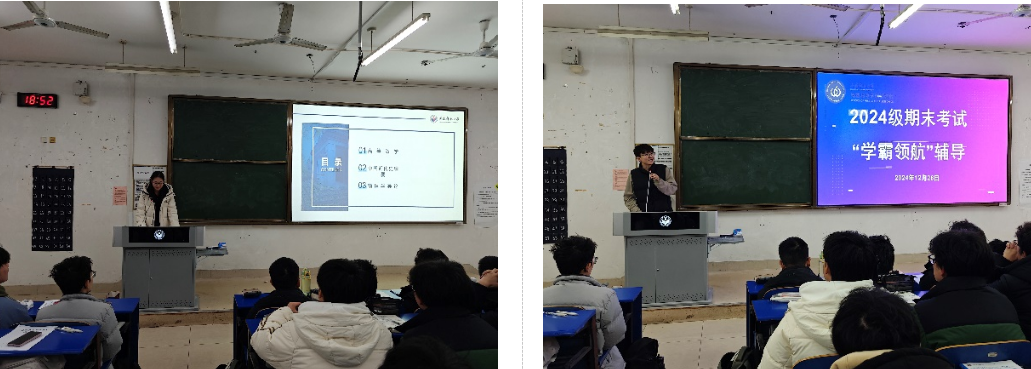 12月26日,“学霸领航”辅导团如期走进2024级新生班级,学长学姐们结合自己的学习经历,针对同学们的学习难点进行专项辅导。张惟宣和孙雨晴同学将英语考试的各部分题型都与四级题目进行了难度比对,分析了各个部分的学习方法以及与教材的联系,明确了考试的重点及写作模板。此外,孙雨晴还分享了自己对于《电路基础理论》的见解,提醒大家要在课堂上集中注意力,做好课堂笔记,注重总结。