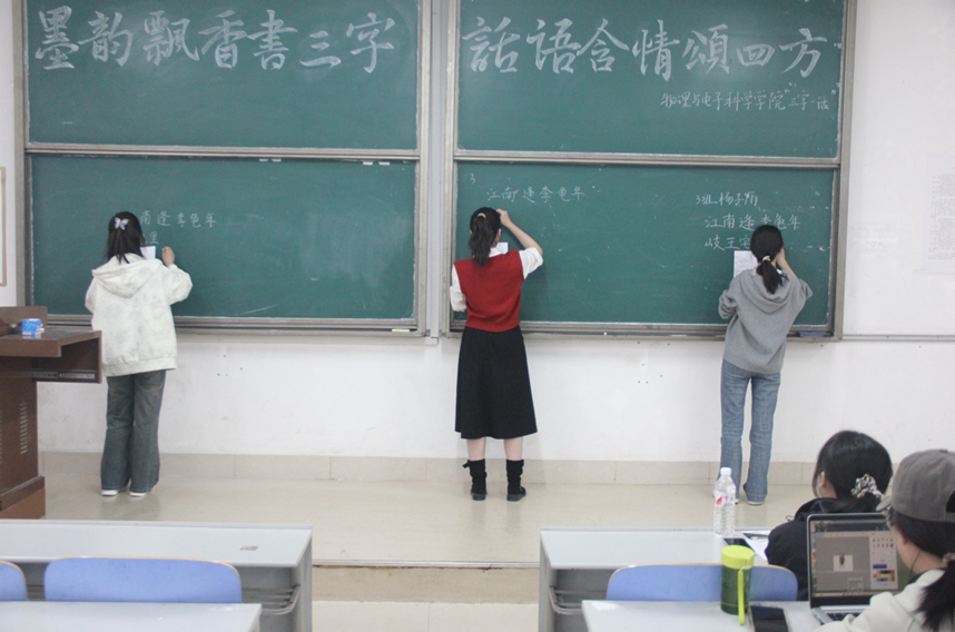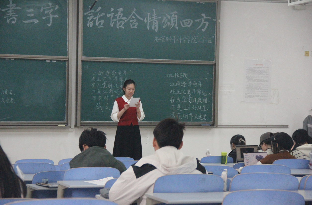 3月23日,物理与电子科学学院于文渊楼C区338室举办“三字一话”师范生技能比赛决赛。本次决赛由学生会发展部承办,20名选手参加。