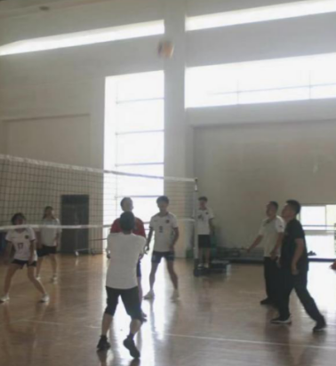 排球比赛中,发球、接球、传球、扣球,每一个环节都紧密相连。老师们凭借丰富的经验,巧妙地组织进攻与防守;学生们则以充沛的活力,积极地应对每一个球。在你来我往的交锋中,大家逐渐形成了默契。每一次精彩的扑救、每一次漂亮的得分,都引发阵阵欢呼。