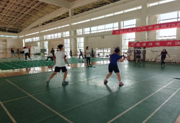 羽毛球赛场上,师生身姿敏捷。高抛、扣杀,你来我往。白色羽球在空中穿梭,似支谊纽带牵连彼此。师生默契配合,在攻防转换间,尽情挥洒汗水,以球为媒,传递信任与鼓励,让赛场洋溢着活力与温情。
