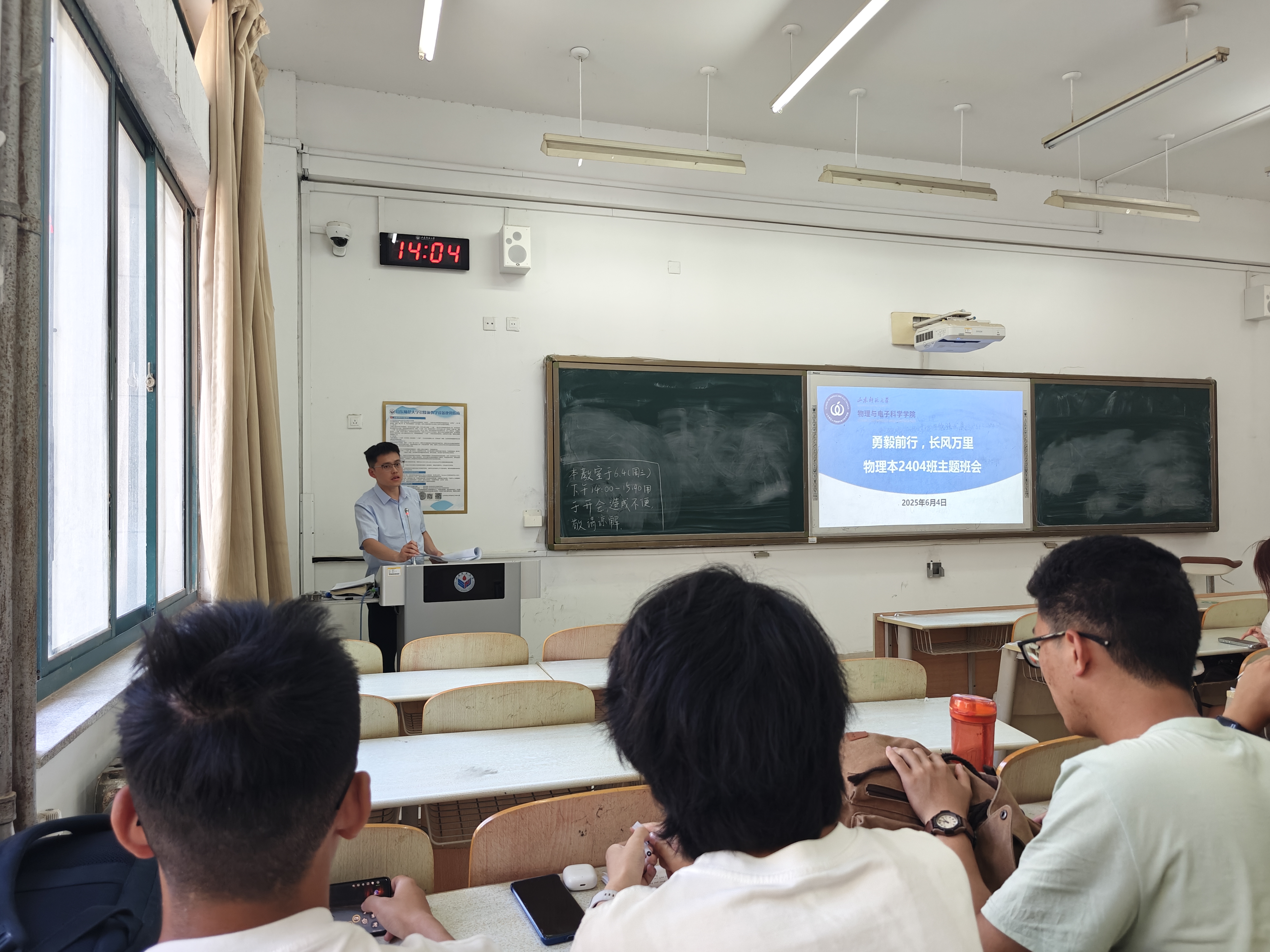 近日,物理与电科学科学院大一新生辅导员苏恒连续半个月深入所负责的9个班级,成功开展以“勇毅前行,长风万里”为主题的系列班会,从思想认知到成长规划,全方位为大一的学子们指引奋斗方向。