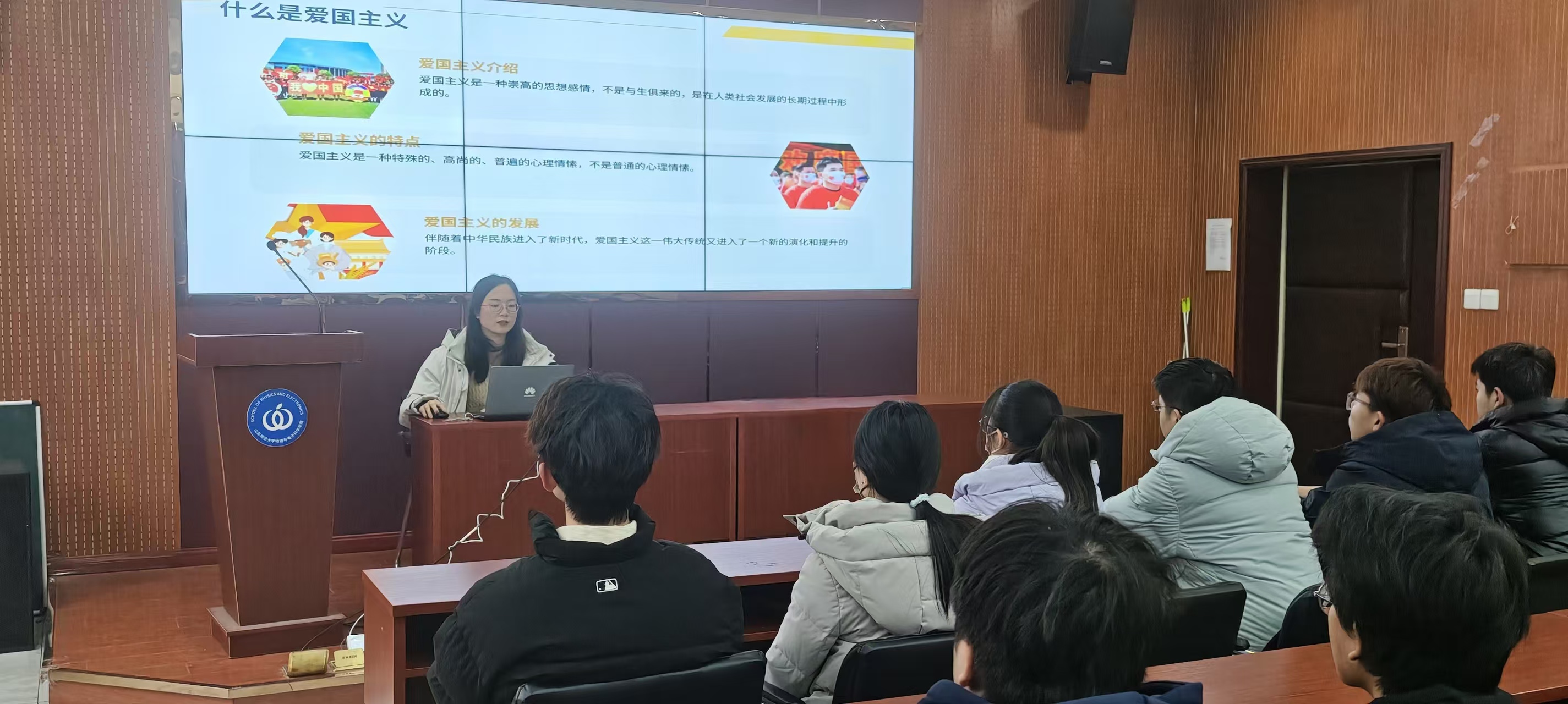 12月9日,物理与电子科学学院组织团员代表开展“新时代爱国主义教育:理性爱国与知行合一”专题讲座,由2022级辅导员杨岚主讲,50余名团校成员参与学习。