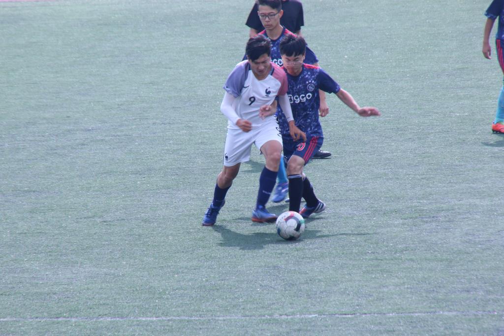 球员们提前到场进行赛前热身。随着裁判一声哨响,双方中场开球。队员们迅速进入状态,灵敏的步伐,完美的传球与流畅的配合赢得现场观众的整整掌声。赛场上战势激烈,你追我赶,精彩纷呈。比赛开始第5分钟,物电学院A队队员打出精彩配合,22号球员王杰助攻11号球员刘伟豪外脚背射门,皮球直入球门右下角网窝,物电学院A队1:0领先。紧接着,数科学院展开反击,其8号球员禁区外抽射,打出凌空世界波将比分扳平。比赛第20分钟,物电学院全体配合默契,11号球员刘伟豪禁区外吊门皮球稍微高出球门横梁。28分钟,边路王杰传中,对方后卫解围,我方得到角球。上半场结束,比分保持为1:1。中场休息期间,各队通观战局,周密安排,在战术上进行了适当调整。中场休息15分钟之后,下半场对决激烈上演。下半场14分钟,数科院获得角球,角球飞出,物电学院门将毕锦维出击失误,对方后卫推空门得手,数科院以2:1反超。随着比赛的进行,双方体能均有所下降,场上失误频繁出现。在激烈的比拼中,物电队队长8号李一将球带入禁区,球被封挡,得到角球。临比赛结束5分钟,物电学院A队快速反击,由5号球员孙硕后场传球交给王杰,王杰继续向前传给孙硕,孙硕得球向前直塞,9号图尔贡抢到对方身后,面对门将推射进球,终场前,将比分扳平为2:2。观众席上霎时沸腾,呐喊欢呼声此起彼伏。经过70多分钟的激烈对抗,裁判吹响终场哨声,比分2:2,双方进入点球大战。最终物电学院A队以点球2比4,常规时间2比2,总成绩4:6惜败,与季军擦肩而过。
