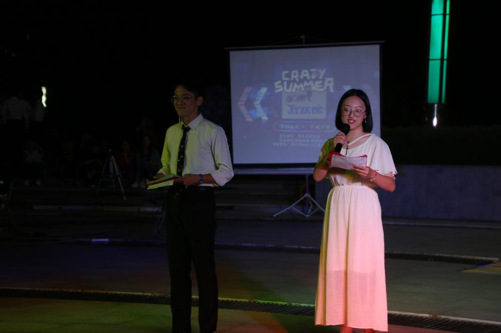 活动伊始,劲爆的开场舞蹈让人们眼睛一亮,舞姿与音乐融为一体,带动全场气氛。随后,物电学院十大歌手大赛冠军裴志阳带来歌曲《As Long As You Love Me》,全场荧光棒一起挥舞,形成一片绿色的海洋。然后由2018级辅导员杨岚上台发言,在大家的强烈要求下,她给同学们带来一首《年轮》,歌声优美动人,台下掌声不断。之后,由物电学院学生会主席刘宣钰发言,并表达自己对新生的祝福。紧接着,军训各连队的副连长来到舞台,由主持人一一介绍,然后各位副连长分别抽取各位学生们的祝福以及提出的各种各样的问题,并由杨岚给各位副连长颁奖,全场沸腾一片。让新生们尤其感动的是,军训教官留给了同学们谆谆教诲以及满满祝福,台下的同学们认真的聆听,有不少同学默默留下眼泪,空气中充满着温馨的气息。之后,“抢凳子”的小游戏带动全场气氛,台下的同学们积极踊跃,纷纷报名上台参加。而在新生展示环节中,同学们更是积极踊跃。有《带你去旅行》的浪漫清新,有《单身情歌》的深情款款,还有《当你》的甜甜告白,各类歌曲让同学们大饱耳福。至此,本次军训狂欢夜也落下帷幕。