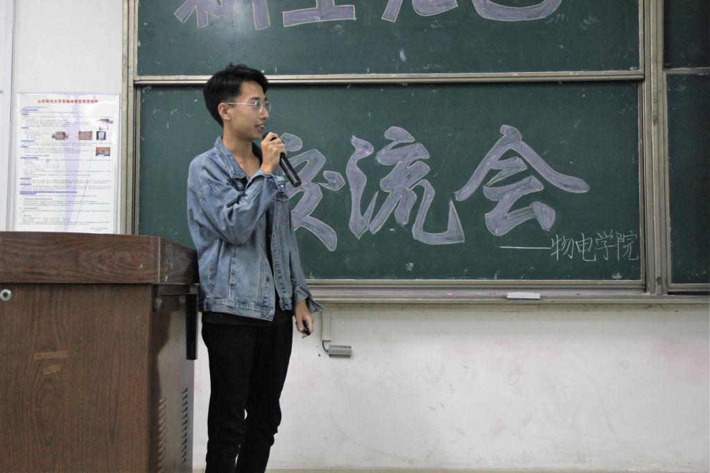 会议由一段快闪视频引入,视频展示的是学生会各部门的合照。视频引起新生对加入学生会的兴趣。针对这一点,2016级物理一班李清晨向新生介绍学生会的制度,并对各部门的主要职能做出详尽解读。他穿插着讲述学生会日常工作中的趣事,鼓励新生加入学生会,努力提升自己。接着,2017级物理一班程智超援引《人类简史》中关于人类未来发展的文段,向大家说明现今社会学习周期在不断变长,终身学习将成为不可逆转之潮流的道理。而后,他与新生分享自己的学习经验,为新生即将开始的学习生活注入动力。来自2017级电子信息工程二班的曲建创谈到,在大学完成角色的转变,需要注重学习方法,积极主动地学习。而后他又说明成绩考核方式和奖助学金的申请条件,以及竞选班委并当好班委的事项。德育成绩同样是新生关注的焦点。2017级物理卓越班的赵元昊则强调了德育分的重要性及获取途径。特别地,她着重向听众介绍了济南的景点与美食。赵元昊的发言有趣生动,将现场气氛进一步推向高潮。