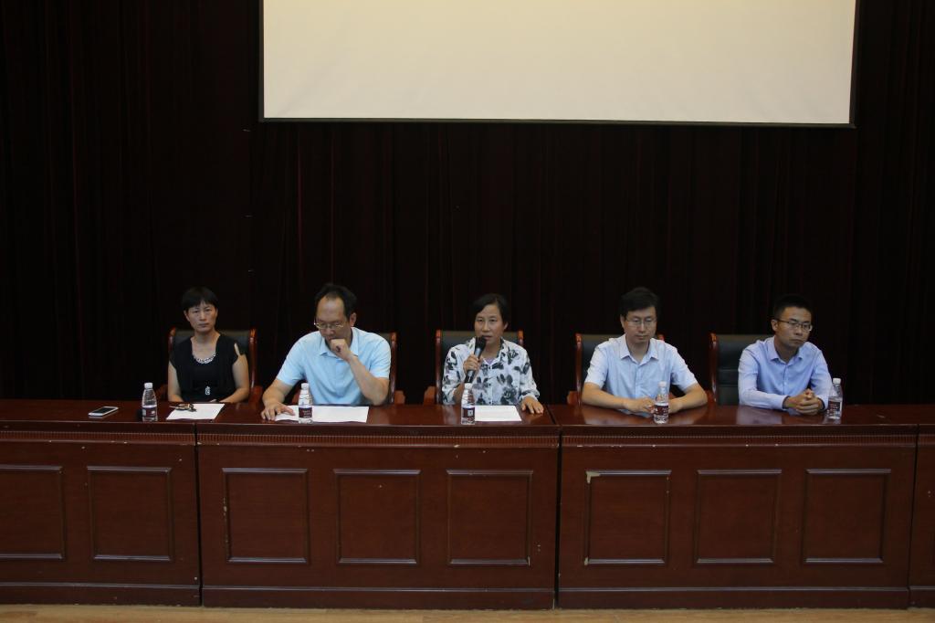 9月14日,物理与电子科学学院于长清湖校区文渊楼C区154报告厅举办"师生面对面"领导新生见面会。学院党委书记胡桂香、院长蔡阳健、副院长任俊峰、副院长李登旺、2018级新生辅导员杨岚出席本次会议,2018级全体新生参加活动。见面会由学院党委副书记万金凤主持。
