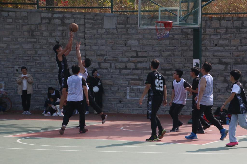 伴随一声哨响比赛正式开始,首观C组第二战场,黑队凭借自我身高优势率先拿到球权,黑队2016级光电二班颜卓凯迅速突破上篮拿到首分。黑队2016级免师班李大川抓住机会,转身跳投扩大优势。面对黑队的猛烈攻势白队也展开了反击,2016级电升本薛超抓住空挡,快速突破迎着防守投进一球。随后比赛陷入僵持,黑队利用抢断长传连续得分,随后白队通过挡拆配合缩小分差。上半场结束,黑队以比分20:13暂时领先。下半场比赛刚开始便火药味十足,一盯一的防守使身体对抗强度大幅度提升,白队薛超多次持球强攻篮下得分,却身陷犯规泥沼提早下场。随着比赛的进行,队员们的体力也渐渐衰退,黑队2016级光电一班王云哲抓住白队几次失误带球上篮得分将比分进一步扩大。临近比赛结束,白队凭借几次罚球缩小分差,黑队还以一记中投稳住局面。最终黑队以40:28的比分拿下比赛。再观C组第一赛场,比赛伊始,两队对抗激烈,但黄队也不慎受到连续犯规的警告。白队抓住机会,一鼓作气拉大分差,尽管白队一度拿下十分的大分差领先,但黄队仍在最后展开精妙绝伦的反击。黄队光学研究生王聪看准时机果断出手拿下数分。黄队凭借着优秀的团队配合以及过硬的心理素质,同时利用几次罚球实现反超。而后黄队改换战术,转攻为守,成功上演逆袭。黄队最终以30:24拿下了比赛的胜利。
