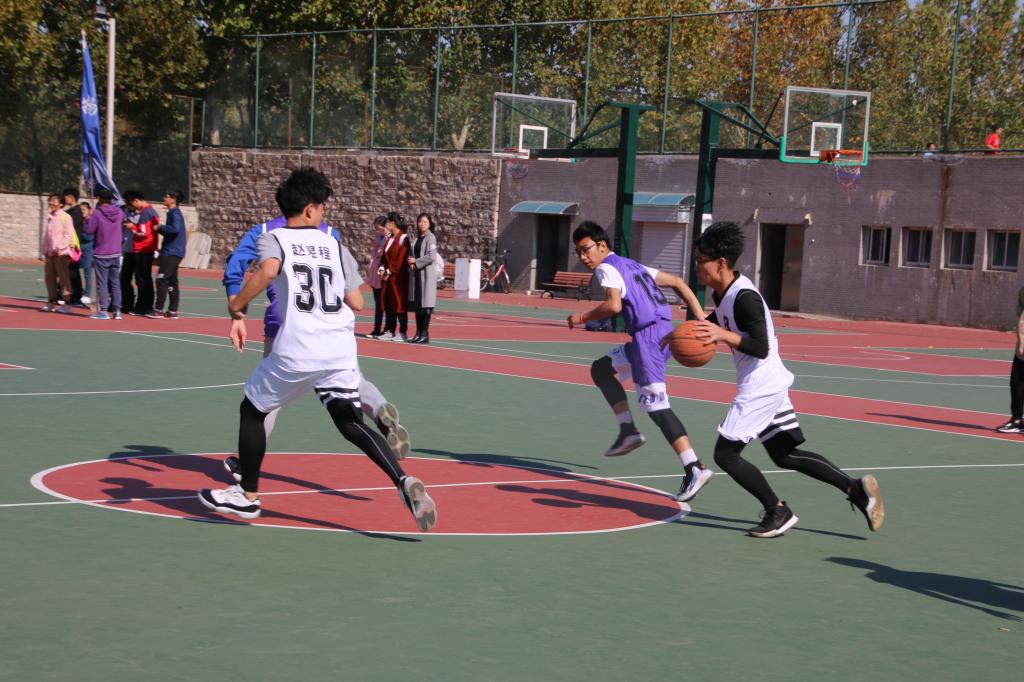 随着一声哨响,比赛正式拉开序幕。首观A组赛场,白队队员们表现出强烈的取胜欲望,出色的配合以及迅速的回防,动作帅气利落,为比赛营造出紧张刺激的氛围。值得一提的是,白队23号球员2018级电子一班欧源凭借着抢断、三步上篮等高超的球技,在上半场就赢得了4分。严密的防守与默契的配合,使白队在上半场以8:0领先于粉队。下半场的比赛刚开始,白队23号队员欧源底线妙传,再由白队8号2018级电科班袁智健上篮,两分命中,同时粉队奋起直追,然而由于分差过大以及对方球员的默契配合,最终以14:32落败。与此同时,B组战场上烽烟四起,白队球员动作敏捷,气势如虹,2017级电子二班丛子涵带球杀到禁区突破上篮得分,赛场气氛瞬间点燃。紫队也不甘示弱,试图夺得主权,却不料16号队员打手犯规,对方罚球。随后,白队球员乘胜追击,连抢到三个篮板球把握机会将比分拉至11:0。30号队员2017级电子二班赵昱程突破防守上篮得分,紧接着又连进两球,赢得观众的欢呼呐喊。上半场比赛结束时,比分25:4,白队暂时领先。短暂调整之后,紫队奋起直追,2017级应用物理班裴志阳外线抛投打破僵局,随后紫队2017级物理精英班毕锦维投进三分球,力图在下半场缩减差距,但白队凭借漂亮的传切配合将局面牢牢控制。比赛最后关头,伴随着白队30号赵昱程罚球两投两中,比分最终定格在47:25,白队胜利。
