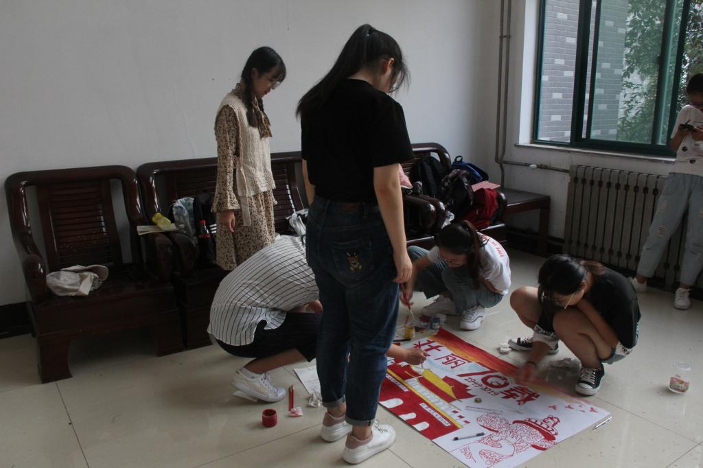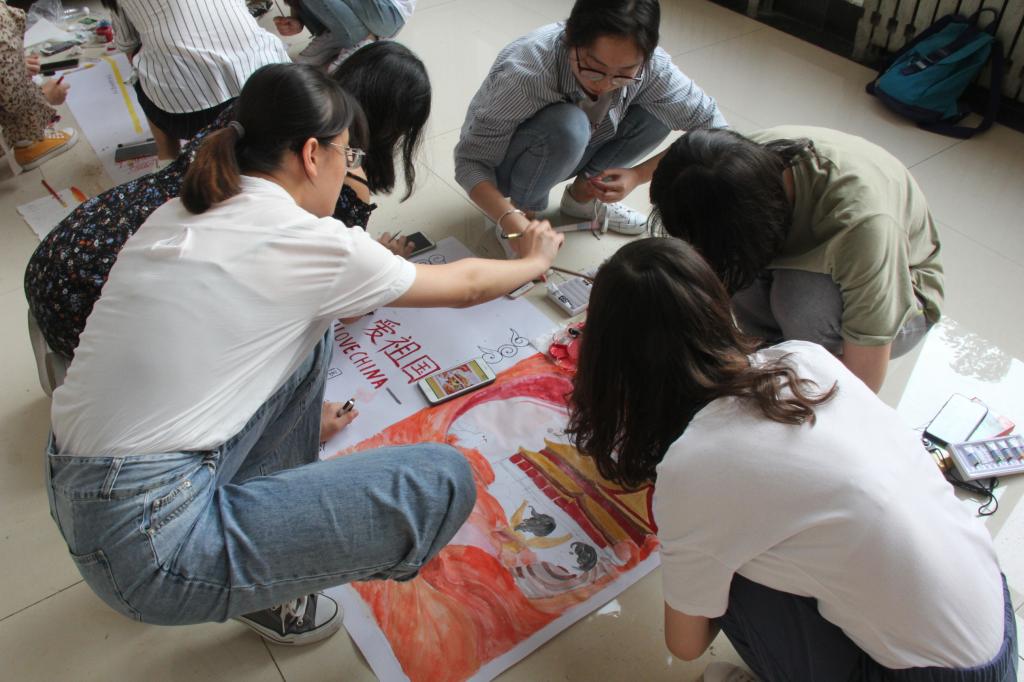 下午,同学们带着染料,画笔,毛笔准时地来到参赛现场。比赛一开始,他们就快速投入到绘画和书法中,他们有的勾勒出祖国的蓝图,有的书写了祖国近年来的成就,每一个人都散发着文艺的气息,饱含着爱国的情怀。经过两个小时的认真绘制后,同学们都完成了小组的创作,每一幅作品都蕴含着学生们对祖国母亲最崇高的敬意和最真挚的祝福。参赛选手的书法犹如行云流水,笔走龙蛇,力透纸背;绘画作品栩栩如生,惟妙惟肖,呼之欲出,别具匠心。短暂的休息过后,主持人公布获奖结果,共有1个小组分获得一等奖,2个小组获得二等奖,3个小组获得三等奖。至此,比赛圆满结束。