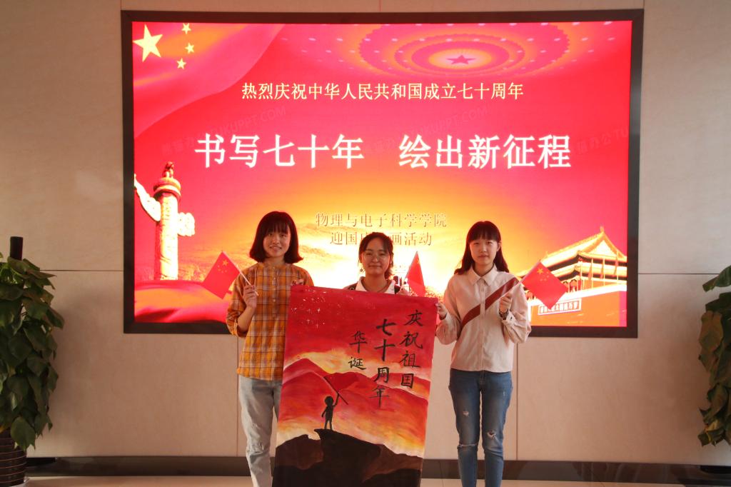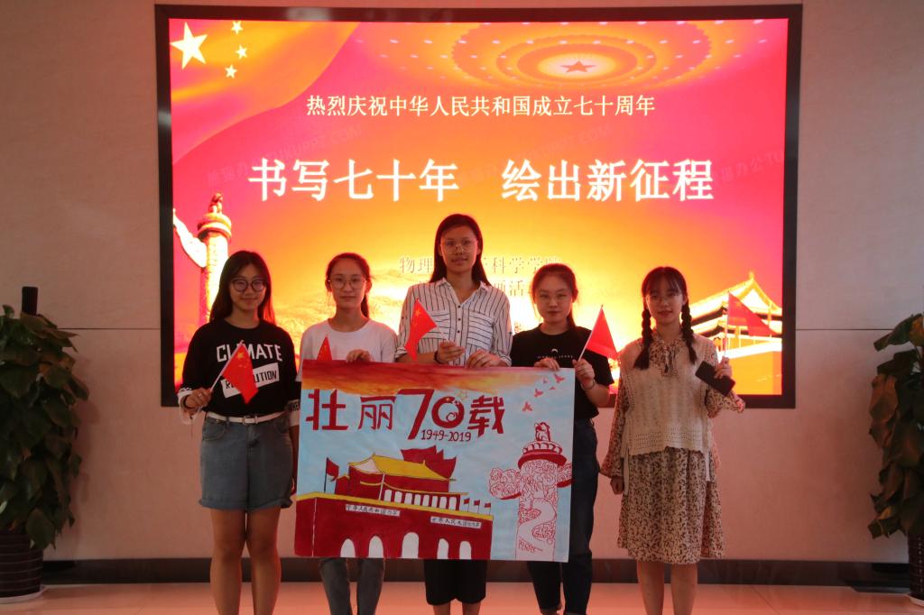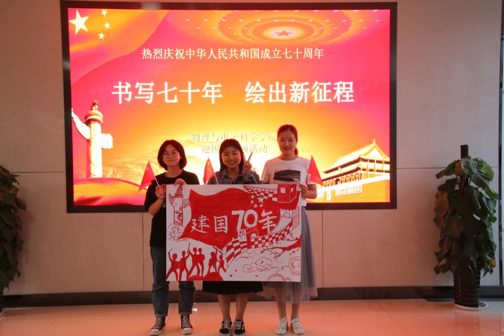 在中华人民共和国成立七十周年之际,物电学子为祖国华诞献出自己的贺礼与祝福,充分展现出新时代大学生浓厚的爱国情怀。本次活动不仅弘扬了中华民族的传统文化,而且讴歌了新时代的伟大成就,体现了中华儿女对祖国母亲的崇高敬意。