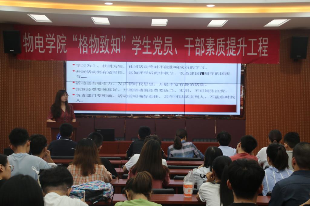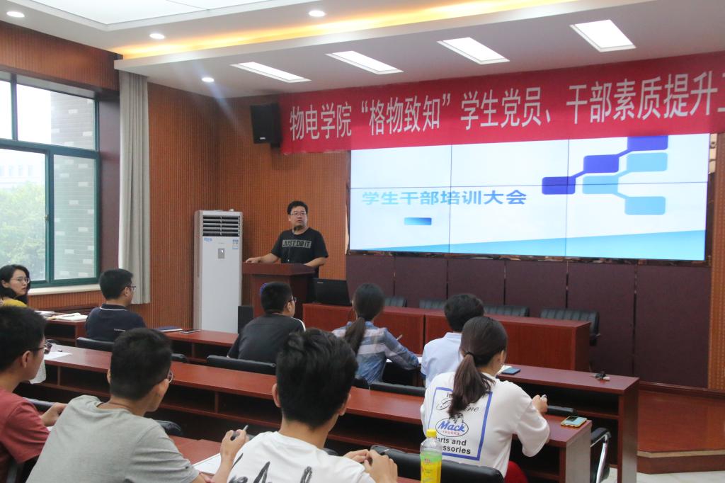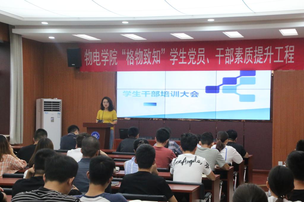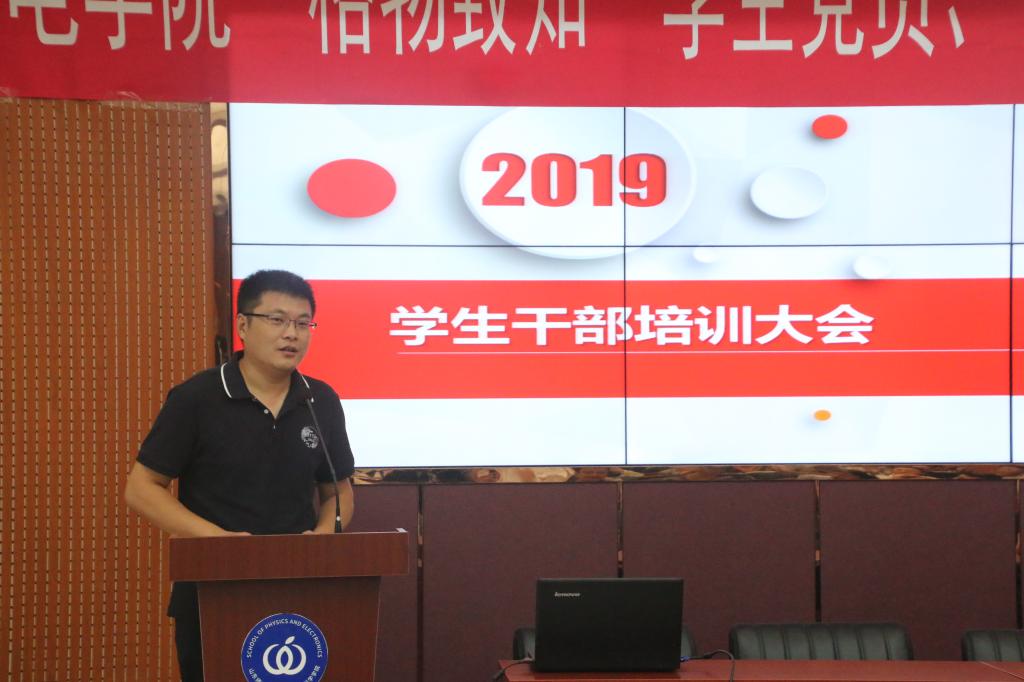 为确保开学各项工作落实到位,提升学生干部工作水平,8月25日,物理与电子科学学院于长清湖校区文澜楼A区347报告厅召开“格物致知”学生干部素质培训会。会议由学院党委副书记杜伟主持,团委书记周勇,辅导员杜军、方芳、杨岚、于双阳、刘婷参加本次会议,本科生、研究生各年级班长、团支书,学生会、研究生会全体成员到场培训。