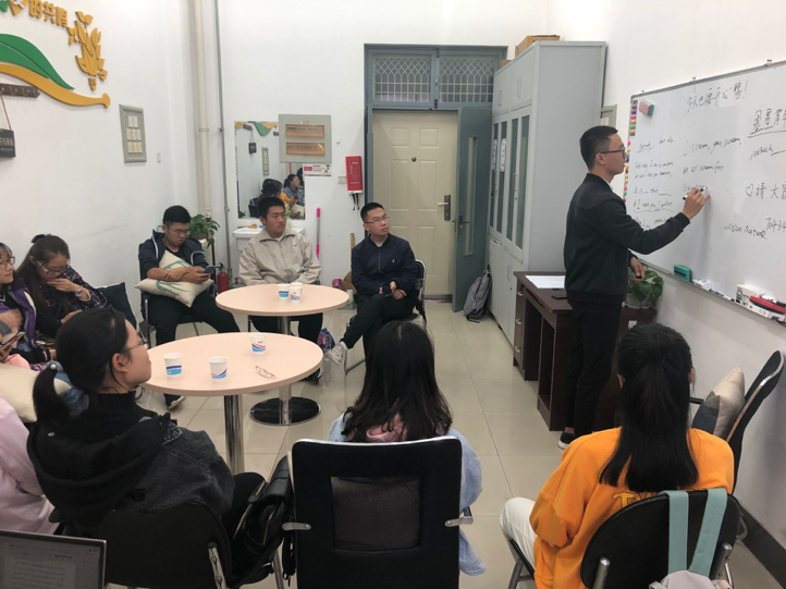 本次“星空下午茶”交流会由两场组成,首场由科技组博士生李崇辉主持。他以“怎样写出高水平文章”为主题,首先讲述了实验室研究做文章的一些经历和认识,接着在同学们的提问中介绍了自己接触科研、走上科研之路的故事,并简要说明了考研和保研的一些注意要点。他强调,一开始自己也是对比别人的文章照葫芦画瓢,甚至可能需要用英语翻译软件来翻译文章,写好后经过自己和导师的反复修改后才进行投稿,并根据同行评议的评论意见进行修改,就这样在一遍遍的修改中能力得到提高。第二场由楚凌瑞学长主持,他与大家交流了作为一名理科生应该如何学好英语。他表示,学英语的关键在与经常运用,想要学好英语不仅仅需要坚持不懈的毅力,还需要一些学习英语的技巧。他强调了词汇量、语法知识和刷题的重要性,介绍了像看美剧、读全英文期刊、词根联想法、意思联想法等提高英语听力、记单词的一些技巧,并推荐了一些好用的提高英语水平的APP。在问答环节中,楚凌瑞依次询问了在场同学在英语学习中的薄弱点,并在听力训练、阅读理解、作文三个模块进行细致讲解。他用幽默的语言和一针见血的分析让在场同学为之折服。