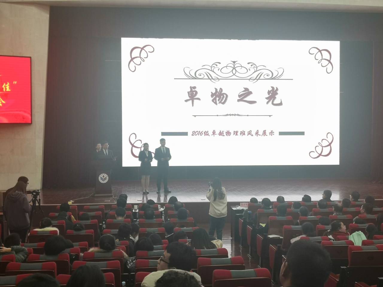 在“十佳大学生”评审中,楚凌瑞介绍了自己在校期间取得的成绩和感悟,凭借优异的学业和德育成绩、丰富的社会实践与工作经历以及傲人的科研成果,最终保研至山东大学。在“十佳班集体”评审中,2016级卓越物理班从科技创新、班级建设、志愿服务等方面,用情景剧的形式生动展示了班级近年来获得的各项荣誉,展现了班级积极向上、勇攀高峰的青春风采。班级保研率高达25%,保研同学均被985高校录取,其中两人保送至北京大学。在科技创新方面,班内科研导师配备率高达100%,在SCI等期刊上发表论文15篇,其中SCI一区文章2篇,二区文章8篇。在互联网+大赛中2人获得省级银奖,2人获得省级铜奖,在挑战杯大赛中3人获得国家级三等奖,4人获得省级特等奖。社会实践方面,“禹爱同行”服务队获全国“三下乡”最具影响力好项目、省级优秀服务队等多个奖项。卓越的成绩得到了在场评委的阵阵掌声和一致好评。