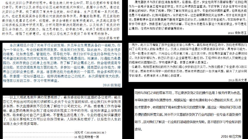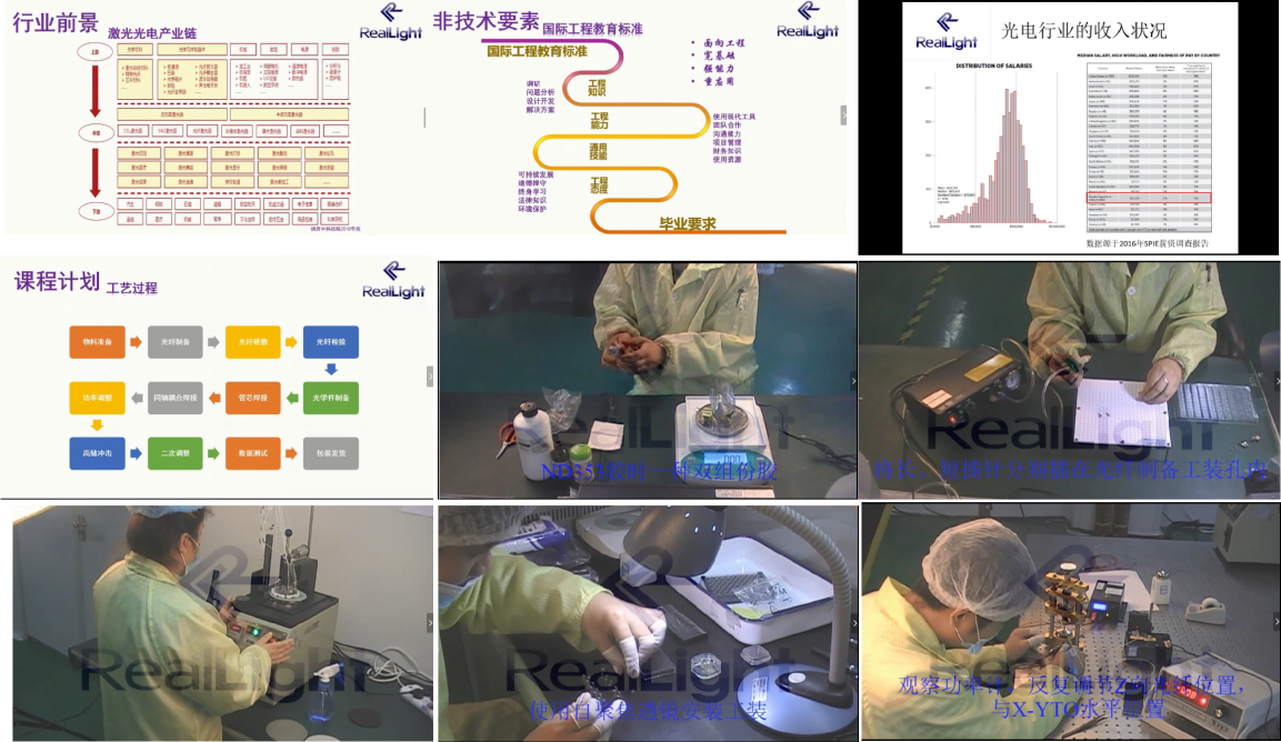 北京杏林睿光是一家光电领域的双高新技术企业,企业工程师通过分享屏幕、播放视频、技术直播等方式在线授课,课程时长3个小时。课程内容丰富,涉及到《工程光学》、《激光原理与技术》、《光电子技术》、《光纤通信》等专业知识。课程充分响应光电教指分委指导理念与新工科建设理念,介绍了光电相关产业发展及应用,帮助学生拓展视野,激发对光电行业的兴趣,培养建立学生积极的事业发展观;分享了典型光电企业人才需求标准,帮助学生认识到非技术要素能力的重要性,进而培养学生的竞争“软实力”。丰富的课程内容、工程师精彩的讲解和耐心的引导激发了同学们浓厚的学习兴趣,课堂直播过程中积极参与了随堂思考、头脑风暴、互动答疑等活动,氛围十分热烈。课后同学们对学习内容做了总结,回顾了所学所思,同学们都认为这次线上工程实训课程形式新颖、听课过程中有身临其境的感觉,而且内容贴合同学们的需求,通过参与课程受益匪浅,对相关行业技术不再陌生,对激光行业有了深入理解,并产生了浓厚的兴趣。除了专业知识,工程师和流水线人员兢兢业业的态度和刻苦钻研的精神也给同学们留下了深刻的印象。同学们纷纷表示,“在了解职业需求之后,要继续提高专业技能与团队合作能力,培养自己的职业责任感和认真做事的端正态度”、“通过此次课程了解到对于任何职业来说,想要取得长足的发展就要不断地丰富自己的认识,加强自己的专业能力,在实践中学习,在学习中进步。学习是无止境的,任何未知知识的了解都值得期待。”