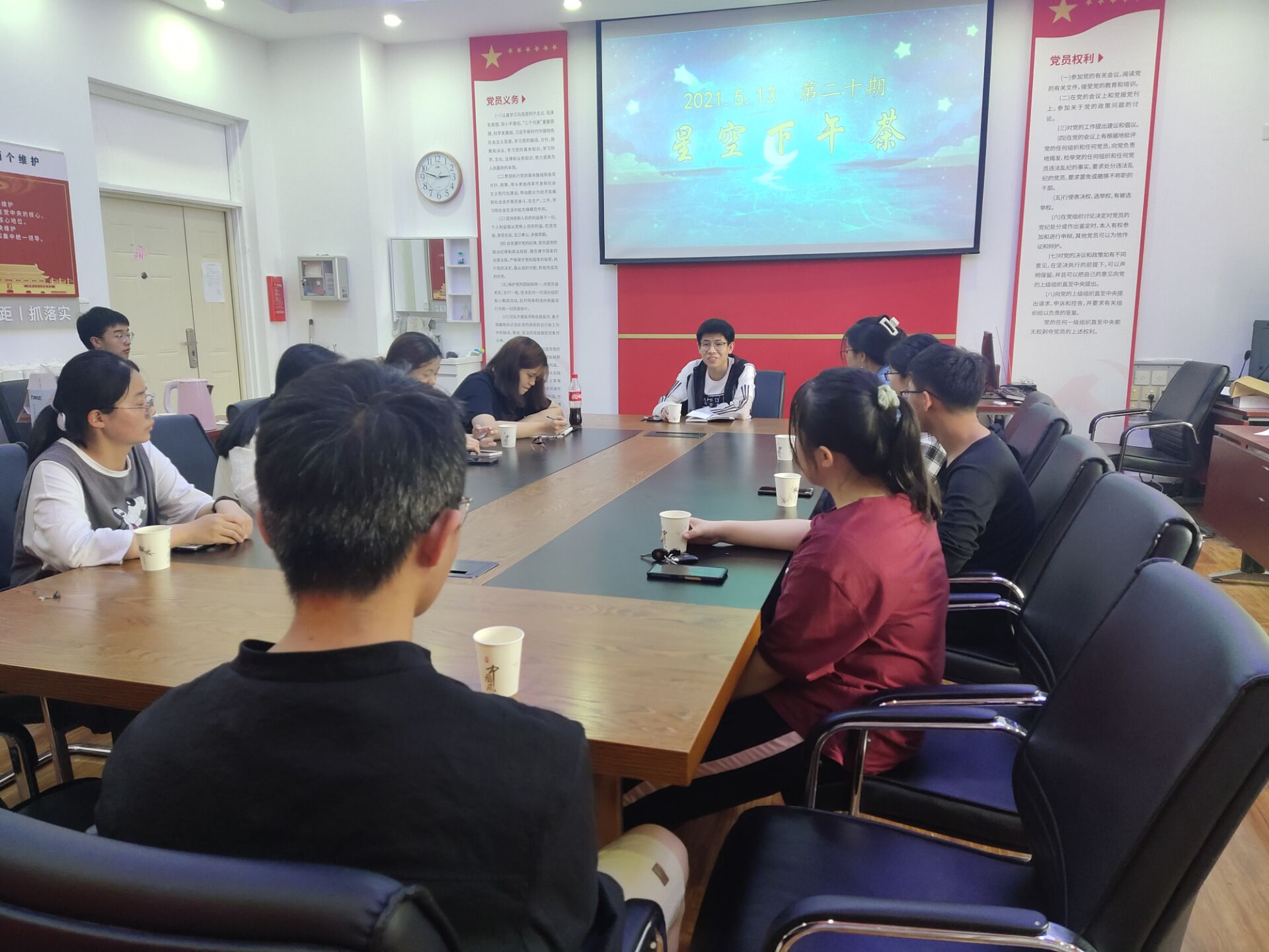5月13日下午,物理与电子科学学院于山东师范大学长清湖校区文澜楼A区F311室成功举办第二十期星空下午茶活动。研究生辅导员党员杜军、本科生预备党员庞博受邀担任本次活动不同部分的谈话人。与此同时,2019级2020级数名同学来到“星空下午茶”与大家交流。