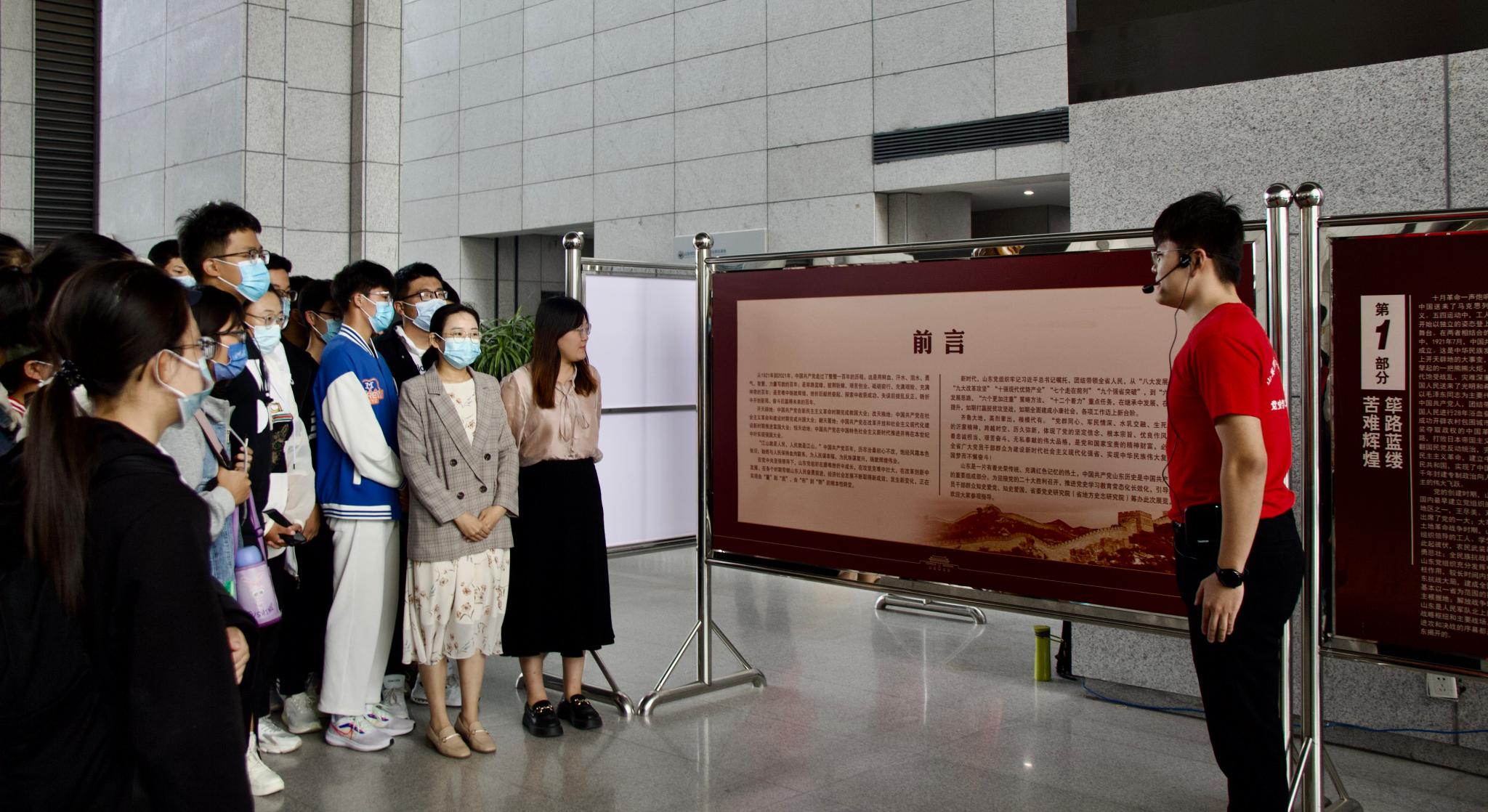 队员以党的苦难辉煌为切入点,为学生们讲述山东党支部在新民主主义革命时期的烈士英雄和抗战经历。讲解队员谈到,在社会主义革命建设时期,共产党人团结带领全国各族人民完成中华民族有史以来最为广泛、深刻的社会变革,在此过程中,山东党员干部艰苦奋斗,积极投身党的事业,讲解员着重强调了中国共产党在此期间取得的胜利战争与光辉事迹。队员以党的永立潮头、改革开放之路为主题,主要讲述山东在改革开放时期,实行改革政策,以经济建设为中心,加快发展生产力,进一步推进改革之路。宣讲队员们的细致讲解,让学生们充分了解到党走在前、开新局、锐意改革、敢走新路的奋斗历程。本次活动在同学们的掌声中落下帷幕。同学们纷纷表示,要笃定信仰信念、传承红色基因,从党史学习教育中汲取力量,让青春在为祖国、为人民的奉献中绽放出绚烂之花。
