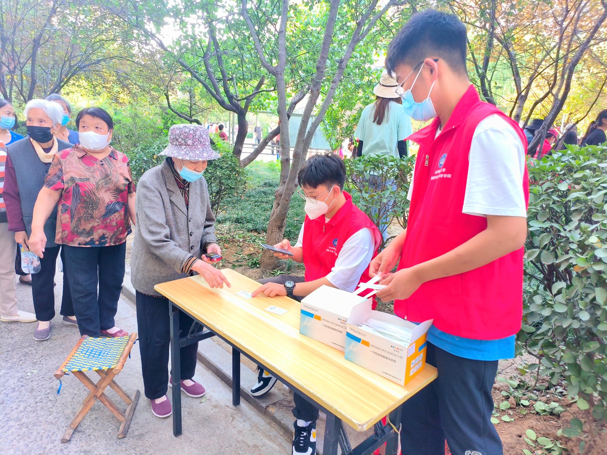 本次志愿服务活动主要从两个方面开展。一是提前做好核酸采样用物准备,提高核测效率;二是提醒居民全程戴好口罩,与他人保持安全距离,做好个人防护。志愿者们认真积极地落实社区防疫要求,提前准备好一次性使用病毒采样管,确保核酸检测各环节的正常运行。核酸检测现场,广大居民在志愿者的引导下自觉保持安全距离,佩戴口罩,有序排队。由于有些老人不太会用手机操作,“红马甲”们便在现场帮助居民们正确登记信息,整个现场秩序井然。热情周到、耐心细致的服务,充分体现了他们“奉献、友爱、互助、进步”的志愿者精神,收到了社区居民的一致好评。志愿者张轶博谈到,当我穿上志愿者服装,站在核酸检测的第一现场时,责任感和自豪感油然而生。作为志愿者,希望能为学院、为社区奉献出自己的一份力量。