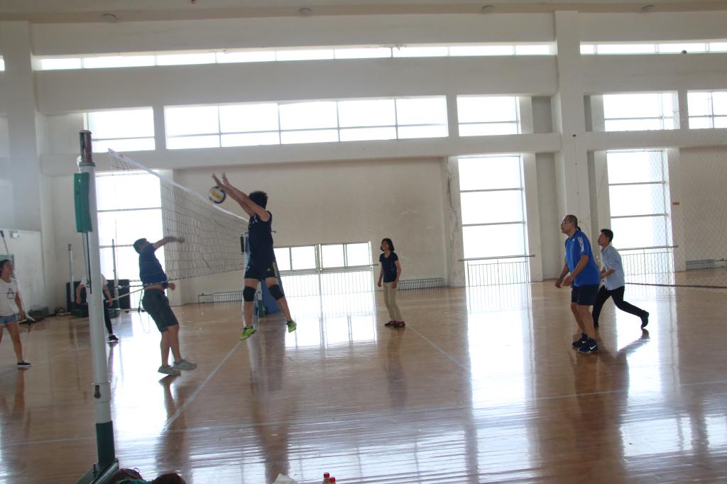 本次活动设有排球师生联谊赛,羽毛球师生联谊赛、本硕联谊赛,男篮师生联谊赛和乒乓球本硕联谊赛。发球口令一响,排球场上参赛球员摩拳擦掌,同学们良好的身体素质和娴熟的球技得到了老师们接连称赞。现场气氛活跃,阵阵欢声笑语,同学们与老师的默契配合更是精彩纷呈,彰显合作的魅力。在李登旺与魏冬梅两位老师对抗研究生张腾和博士生高法金的羽毛球比赛中,一记记精彩的扣杀、劈杀或是巧妙的高远球、吊球,场边观战的同学们喝彩连连。乒乓球场上的陈传松老师上步搓球、侧身进攻后退步拉球,行云流水拿下一球;而他的对手2015级学生刘笑宇也不甘示弱,以一记台内快搓断球赢回一分稳住局势。双方精湛的球技与精彩的比赛赢得现场观众的阵阵掌声。篮球场上各位选手精气神十足,各路球技展现地淋漓尽致,每招每式尽皆精彩,整场比赛比出了风格,亦比出了水平。扣人心弦的比赛让每一位在场观众激动不已。