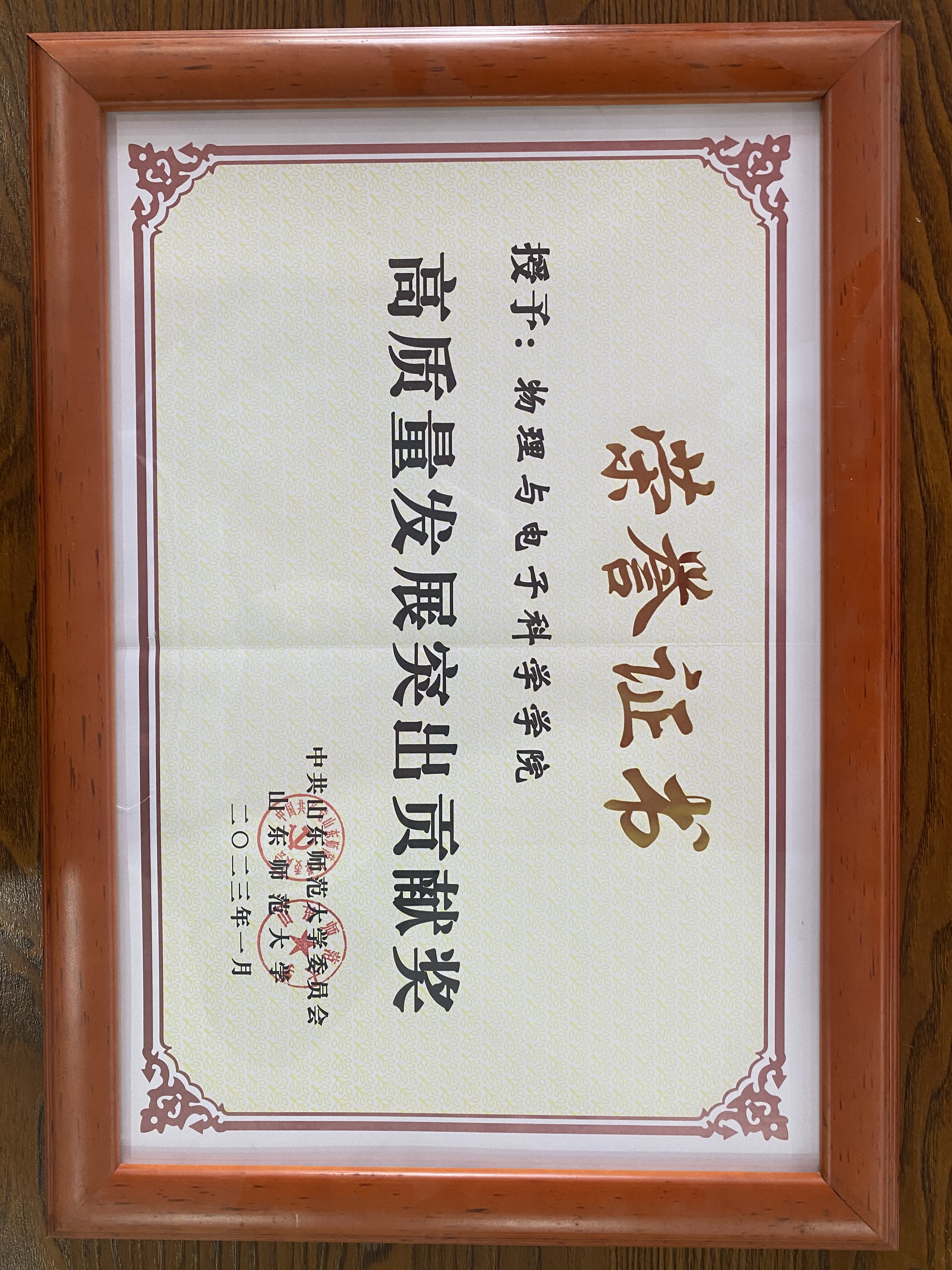 1月6日上午,学校2022年度表彰大会在千佛山校区大礼堂隆重举行。物理与电子科学学院喜获佳绩,荣获2022年度高质量发展突出贡献奖、疫情防控工作优秀单位。