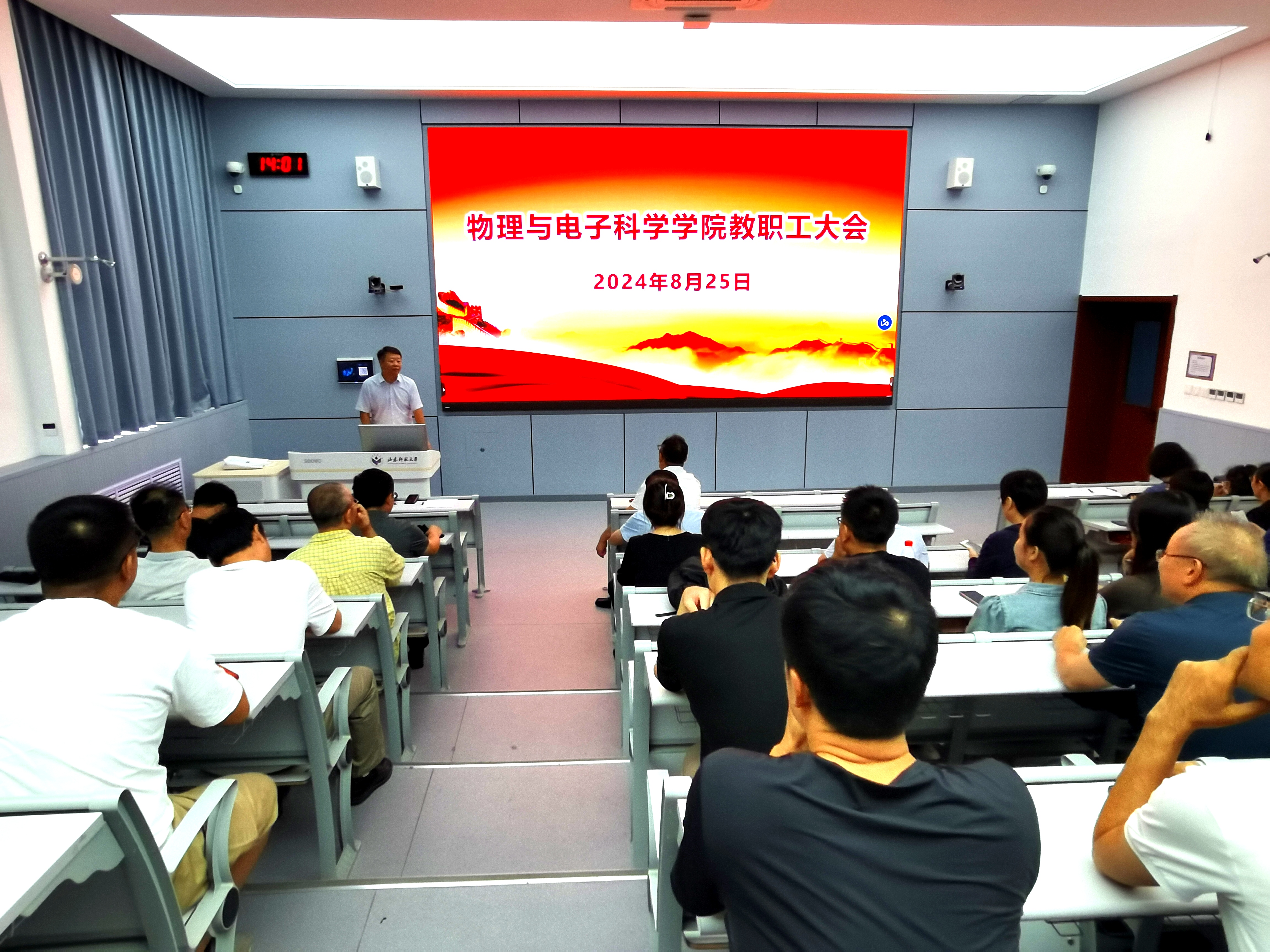 8月25日下午,学院在千佛山校区1215智慧教室召开新学期全体教职工大会,传达学校2024年工作动员大会精神,安排部署新学期各项工作任务。会议由学院党委书记谢德仁主持。